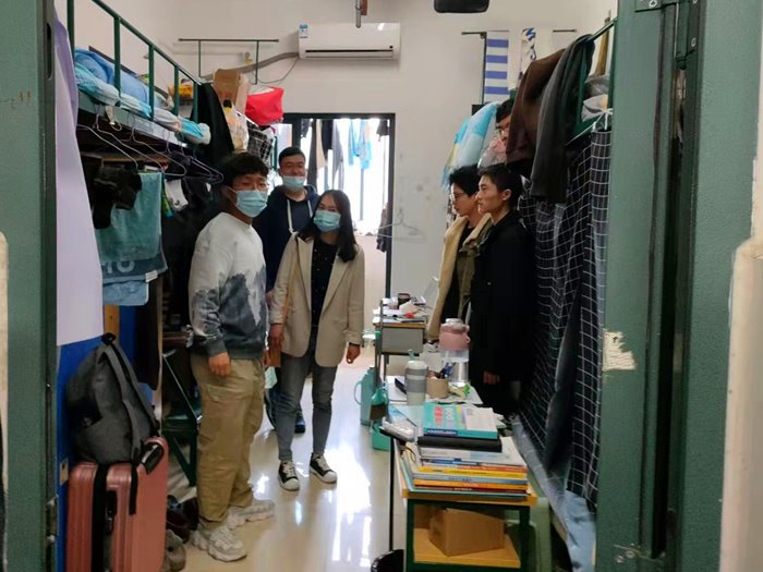 走访过程中,学院领导还就学生提出的各类问题予以耐心解答和解决。学生们表示将严格遵守并配合学校疫情防控工作,以积极的精神面貌投入到校园生活中。(方林莉/文 徐亚、段雷、王振龙/图 杜明/审核)