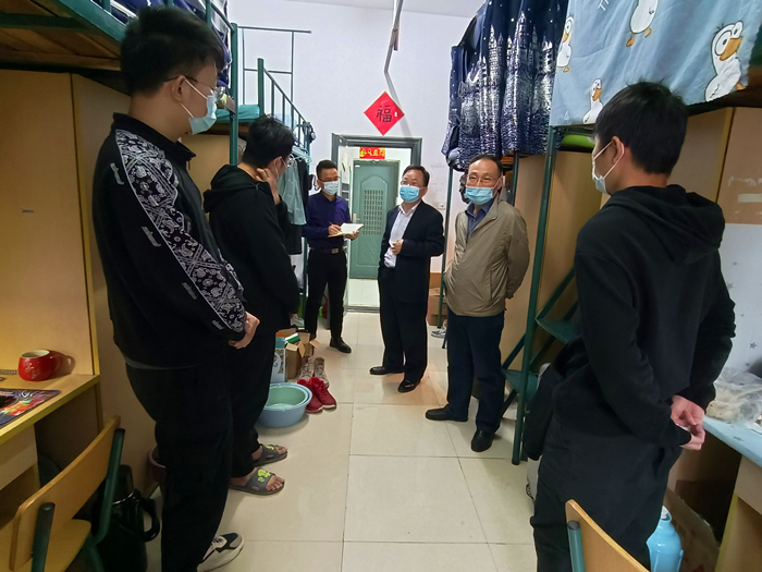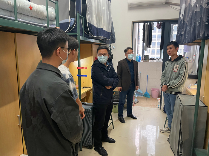 每到一个宿舍,学院领导叮嘱同学们要严格遵守学校疫情防控各项举措,做好疫情防控常态化下的自我管理和个人防护,养成良好的生活卫生习惯,保持积极乐观的健康心态,共同营造安全、健康、舒适的校园环境。
