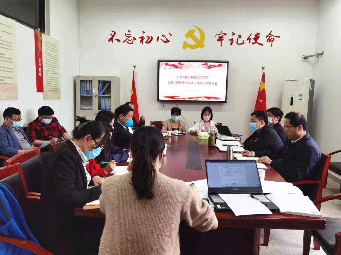 4月20日下午,人文与国际教育交流学院召开应用心理硕士专业学位授权点申报方案推进会暨应用心理学本科专业人才培养方案论证会,学院党政领导、心理学系全体专职教师以及兼职教师代表参加了会议,会议由院长周亚东主持。