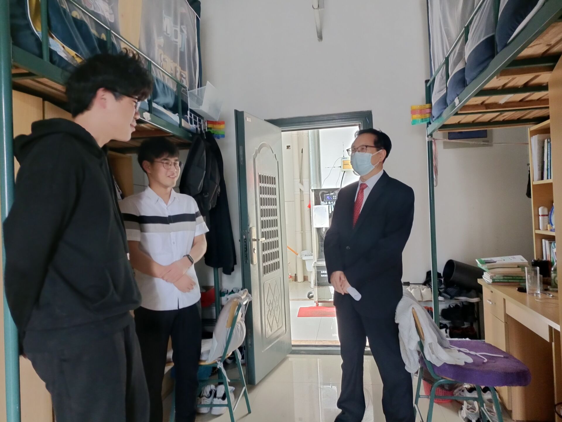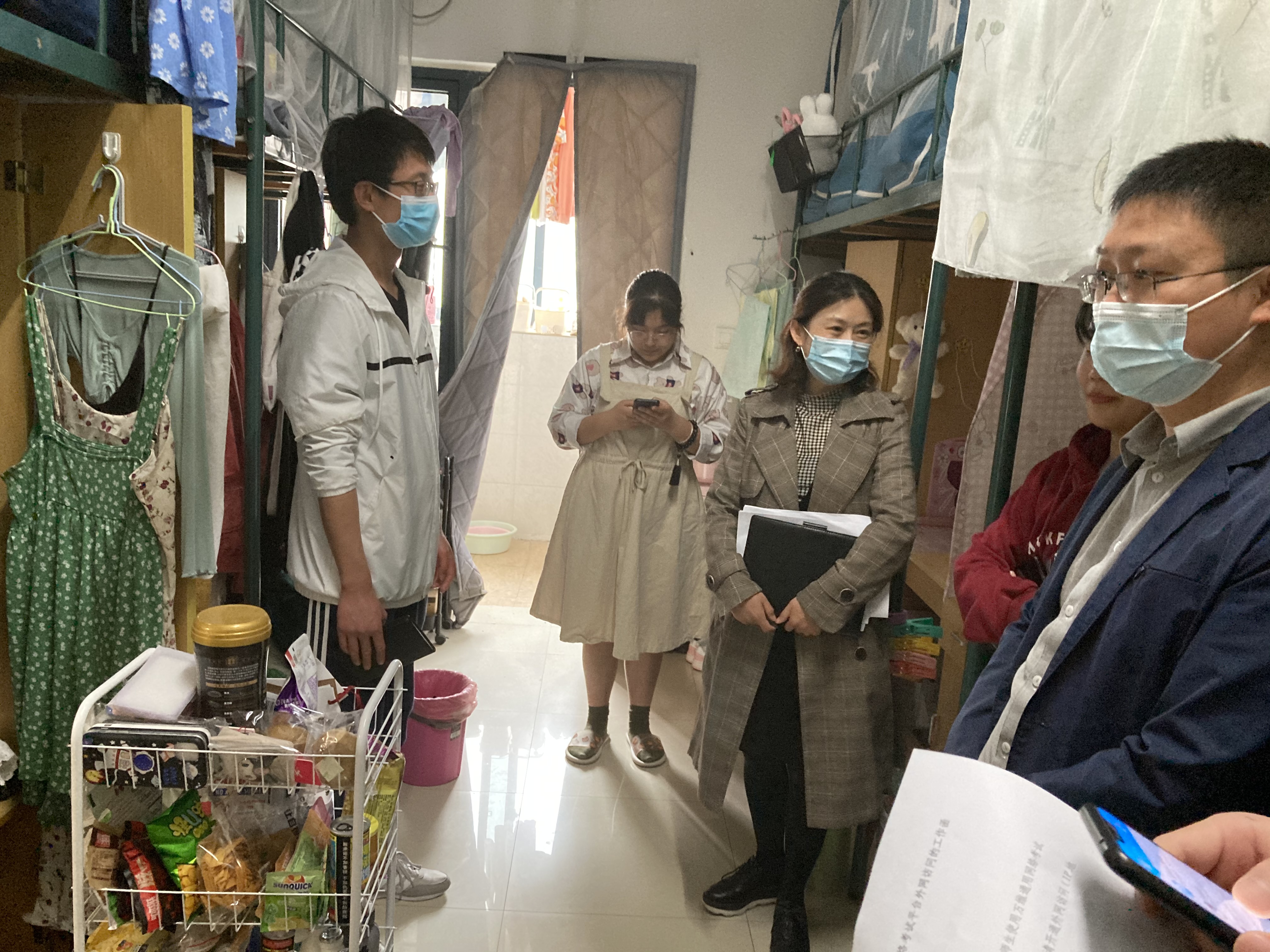为严格落实疫情防控工作各项要求,结合期中教学检查,了解学生在校园内、在宿舍内真实生活学习状态,4月20日,学院党委书记吴成海及学院党政领导带领全体辅导员,深入学生宿舍开展走访检查。