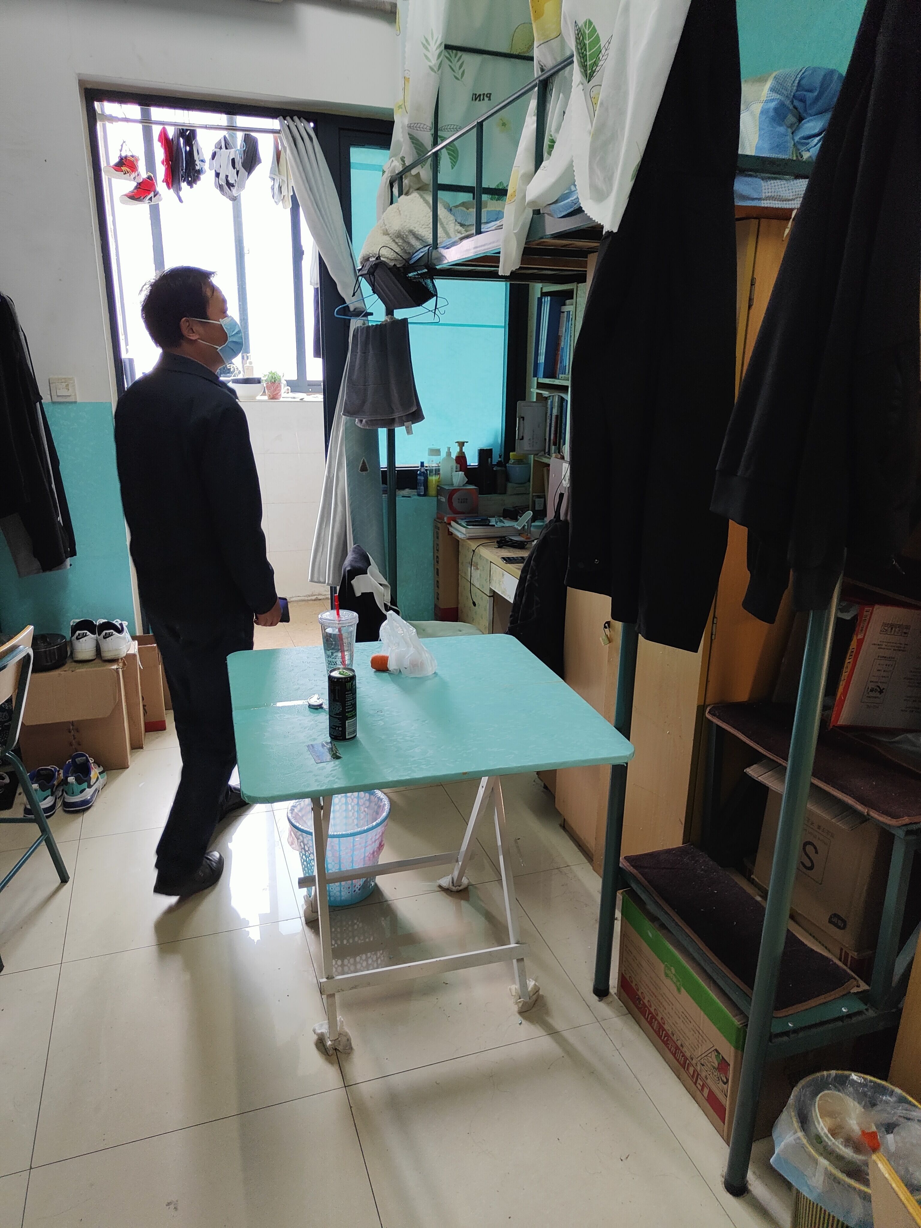 走访中发现,有的学生正在宿舍上网课,他们认真听讲,勤做笔记;辅导员与学生谈心交流,气氛轻松,师生融洽;宿舍环境卫生总体上较为干净整洁。检查中,领导、辅导员与学生亲切交谈,关注他们的学习、生活,学业规划、班级活动,倾听他们对疫情防控下校园管理的意见和建议,勉励学生树立政治意识,自觉服从防控管理,走出宿舍、走向操场,多参加集体活动,多把精力投入到各类学科竞赛中,培养全面综合的能力。