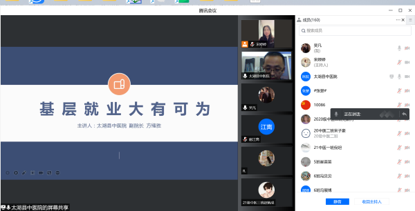 4月23日下午,中医学院特邀安庆市太湖县中医院副院长兼脾胃病科主任、校友方绪胜为毕业生作题为《基层就业 大有可为》的专题线上讲座。学院党委副书记、班级辅导员、研究生及本科生共计200余人云端相聚,参会聆听。
