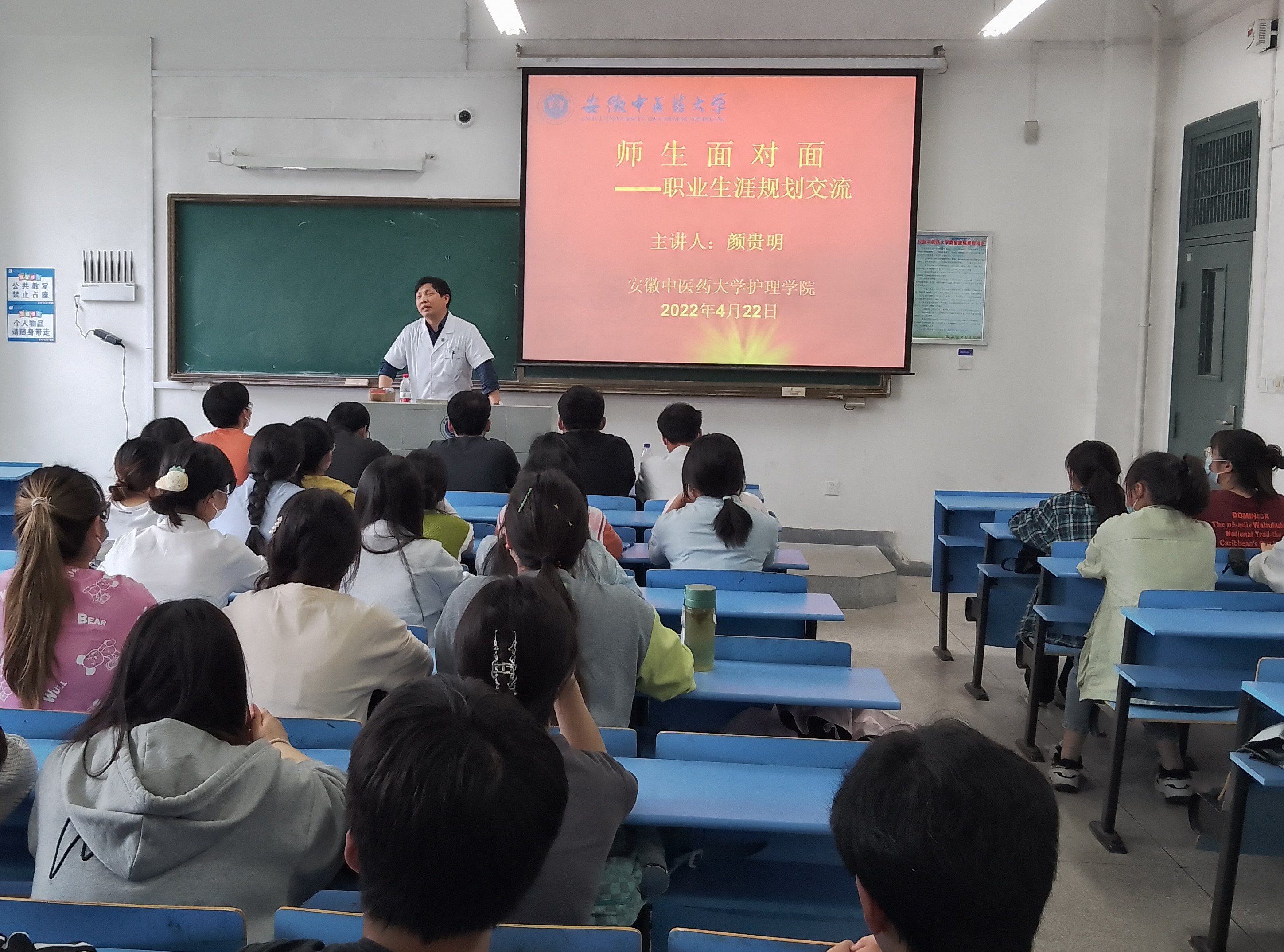 4月22日下午,护理学院院长颜贵明与同学们面对面交流,开展了一堂生动的就业指导课——如做好职业生涯规划。