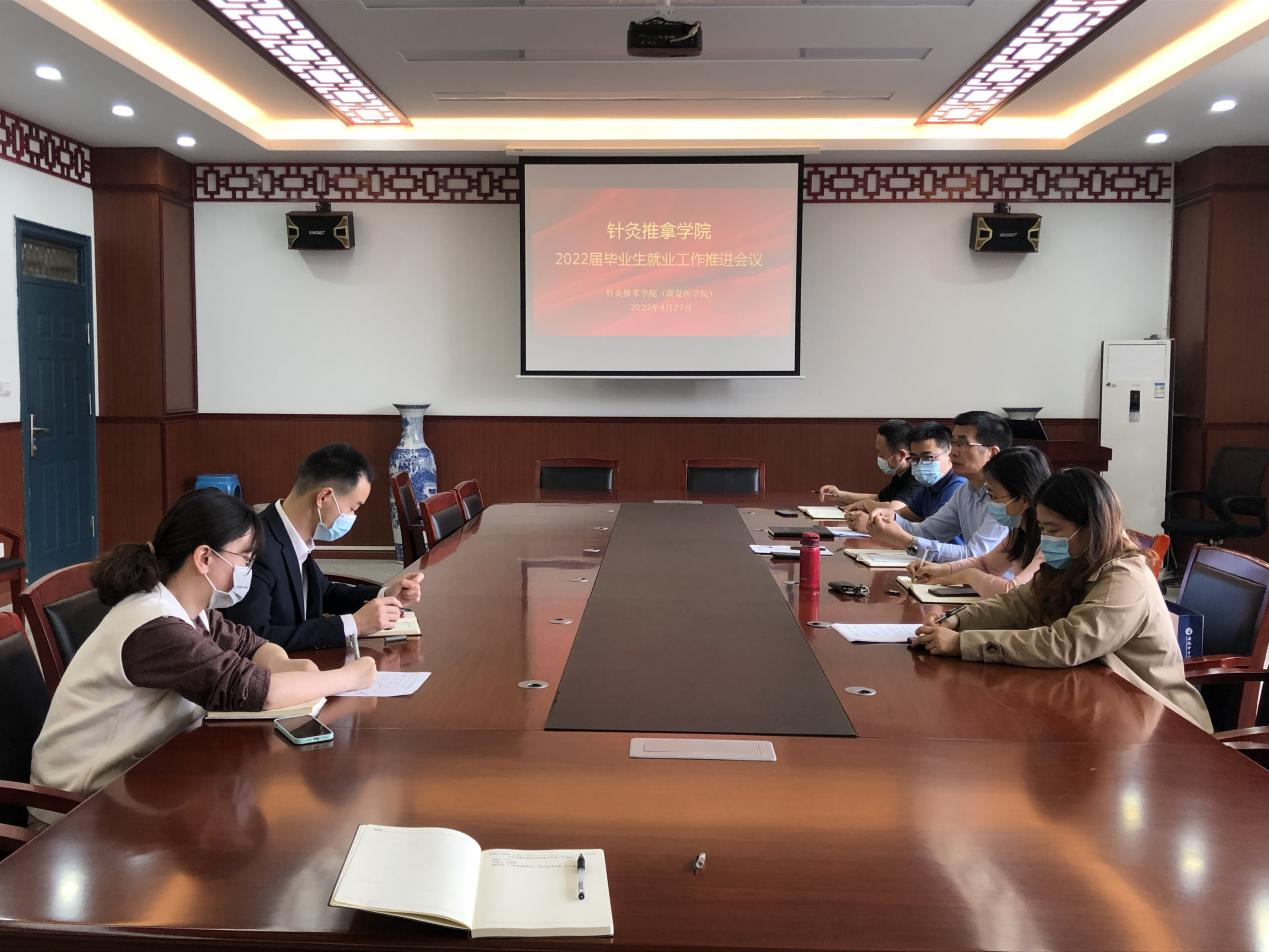 为进一步做好2022届毕业生就业工作,促进毕业生更加充分更高质量就业,4月27日上午,针灸推拿学院2022届毕业生就业工作推进会在少荃湖校区至精楼A325会议室召开,学院党政领导班子、毕业班辅导员、实习与就业办公室秘书参加会议。