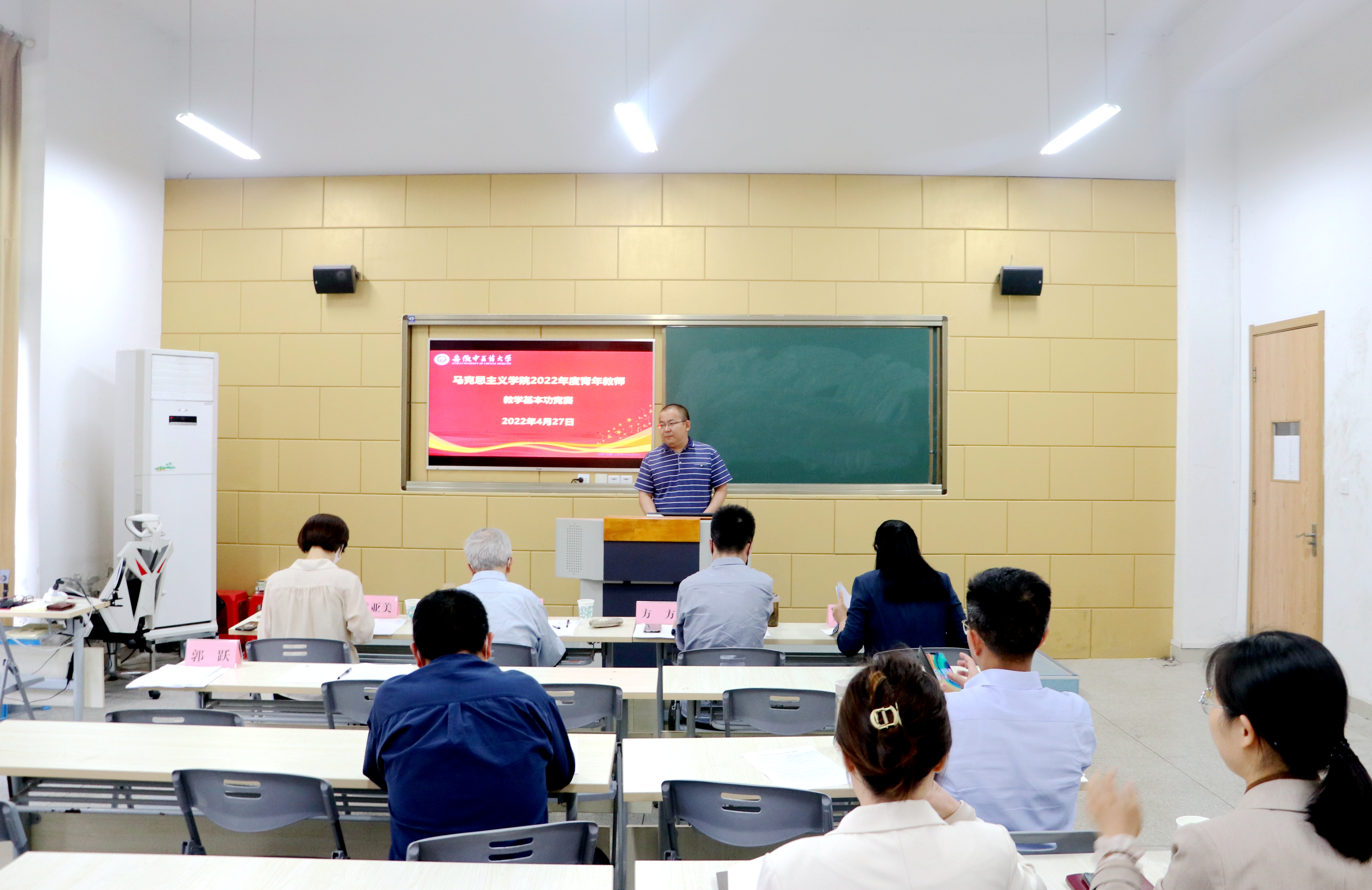 副院长郭跃宣读了《关于举办安徽中医药大学第二十届青年教师教学基本功竞赛的通知》和《马克思主义学院关于举办2022年青年教师教学基本功竞赛的通知》,就本次教学比赛的竞赛内容、奖项设置、评分规则等进行了说明。