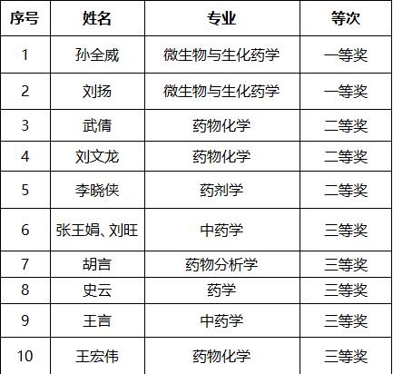 第一届“药苑之星”研究生壁报大赛获奖名单