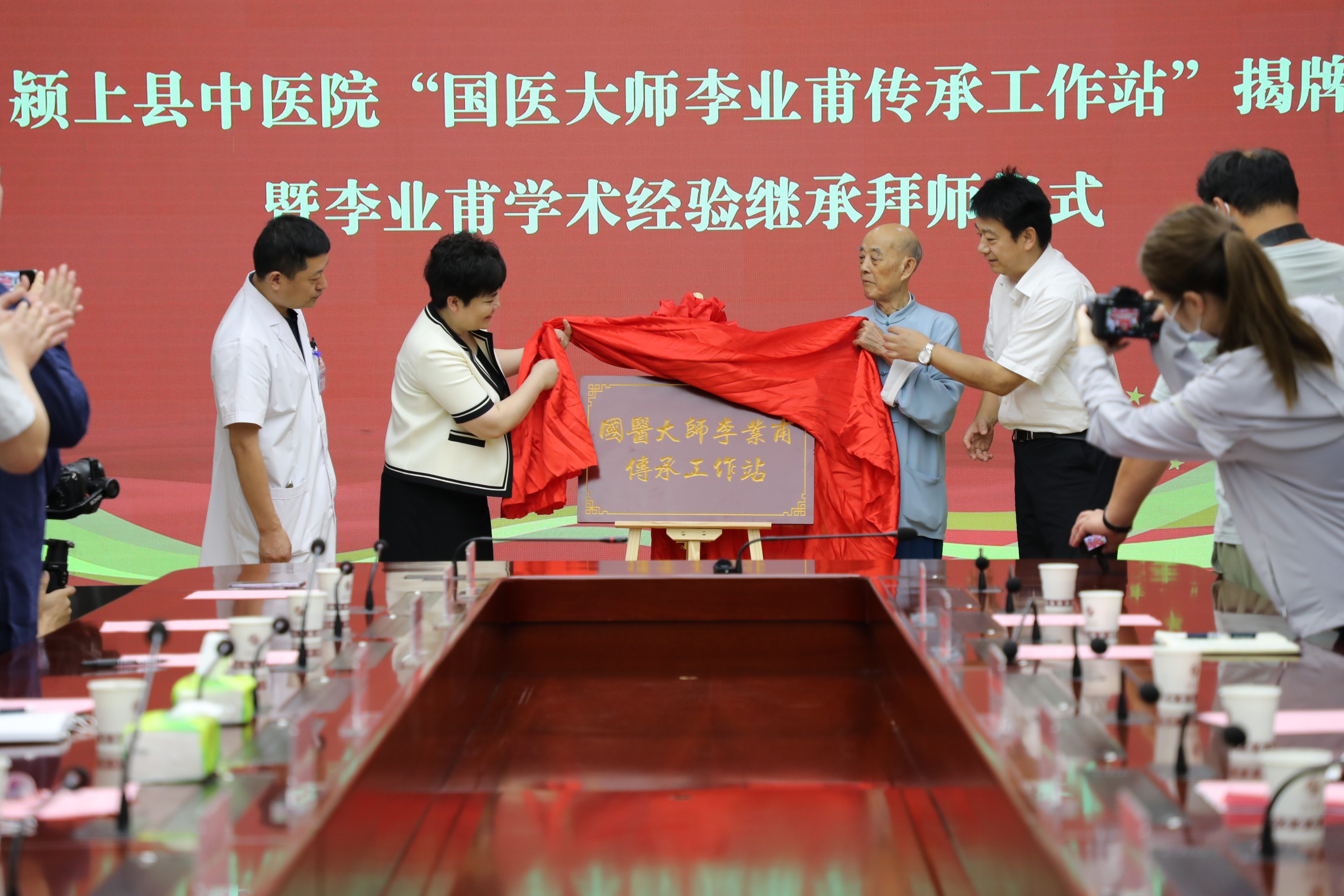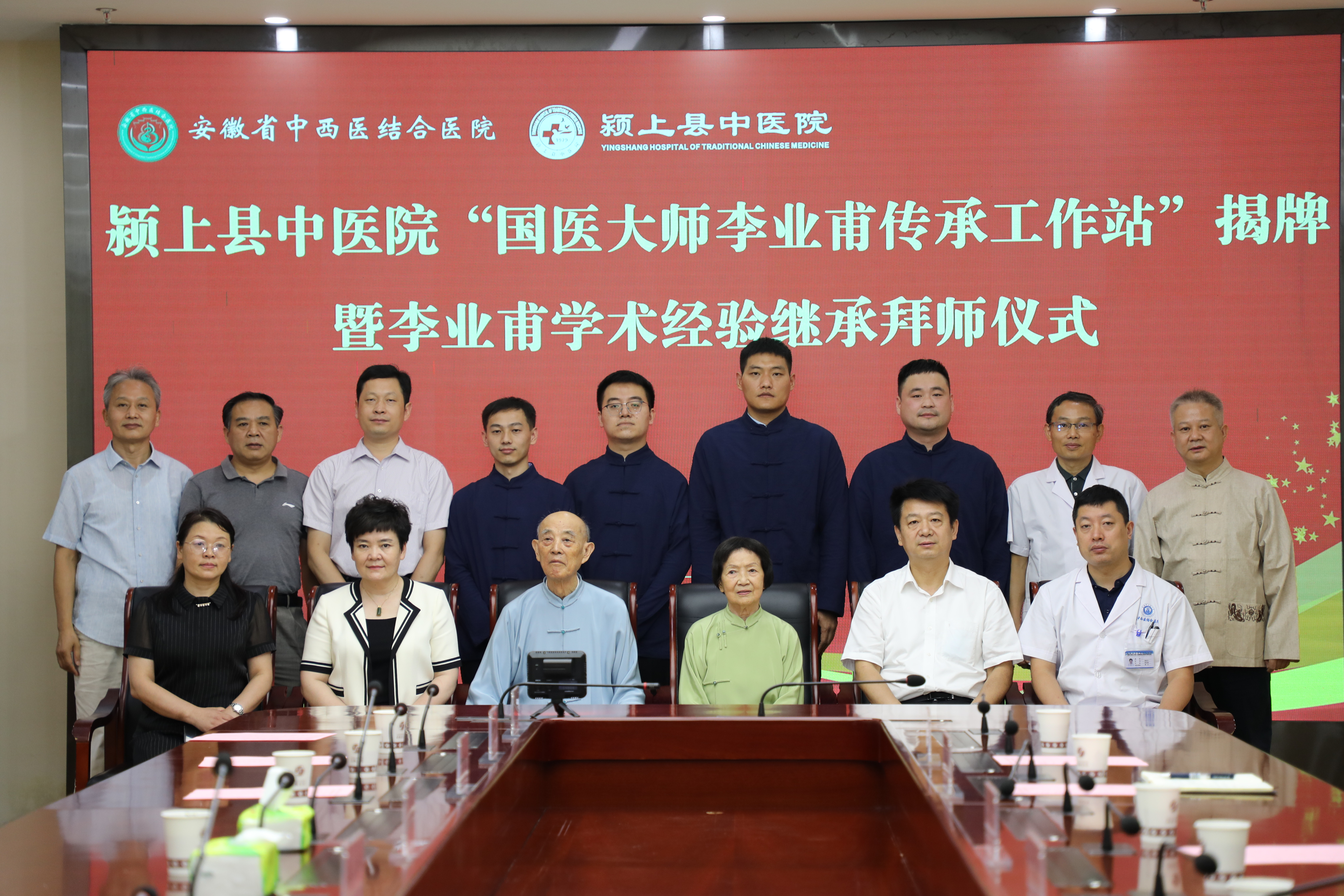 8月4日上午,阜阳市颍上县中医院“国医大师李业甫传承工作站”揭牌暨李业甫学术经验继承拜师仪式在第三临床医学院举行,这是继上海中医药大学、江苏省徐州市中医院、宁夏回族自治区吴忠市人民医院、舒城县中医院、阜南县中医院、太和县中医院后,省内第四个、全国第七个“国医大师李业甫传承工作站”。