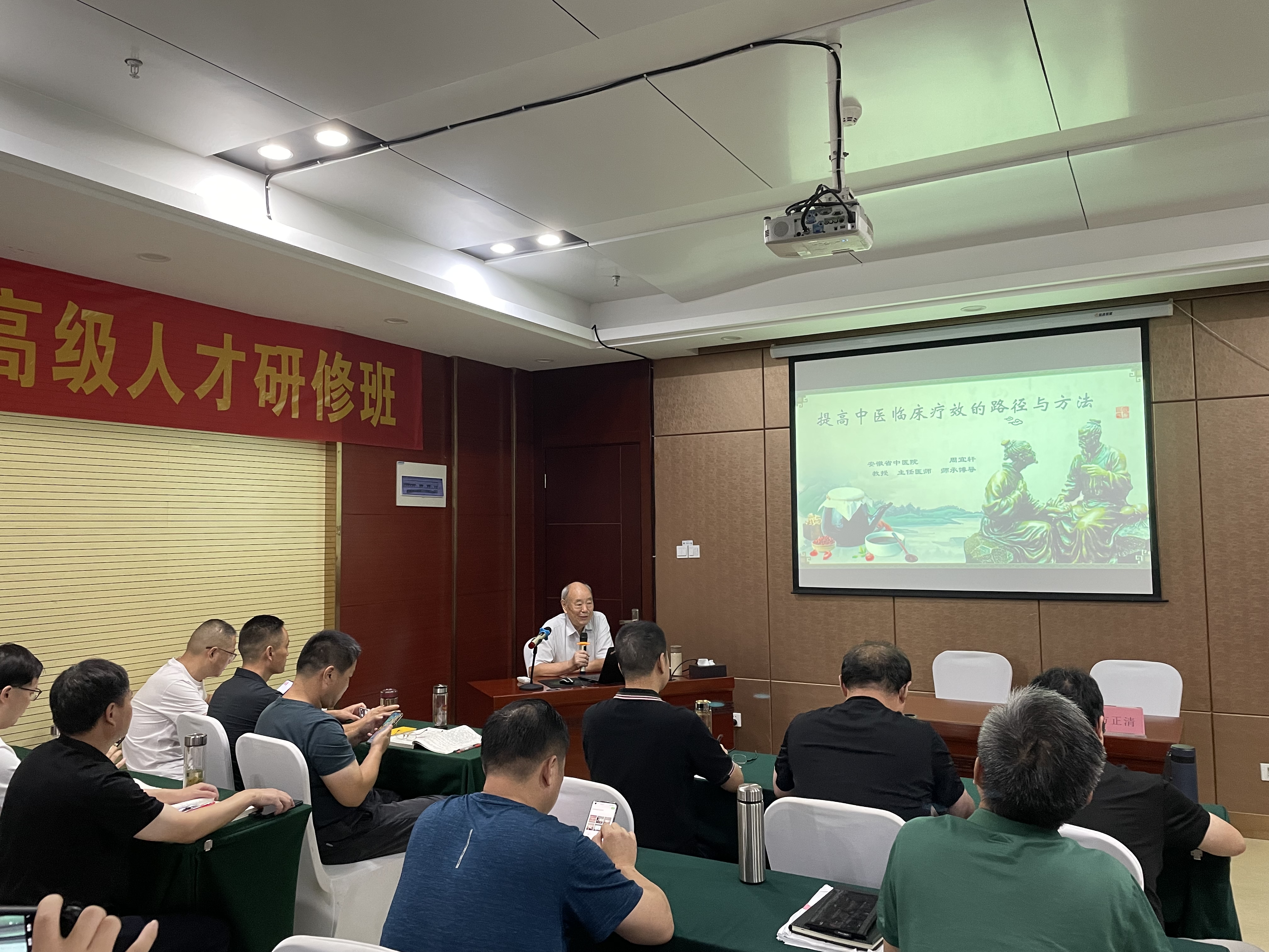赠书仪式后, 周老开展了题为《提高中医临床疗效的路径与方法》的首场讲座,周老结合自己的经验娓娓道来, 分享了很多自己在临床诊疗中遇到的经典案例,他告诉学员中医成长需有三个阶段:打基础、促发扬、立创新,阐述了学习中医经典的重要性和方法,强调了跟师学习的必要性,特别是一定要勤于临床,在不断探索中收获中医疗效。