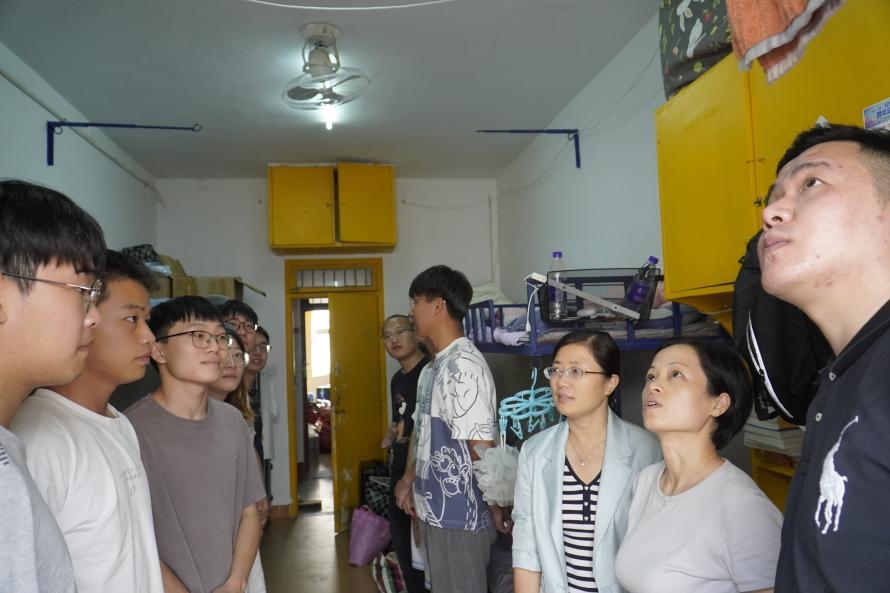 在搬迁工作完成后,金晓琴、顾义俊带领班级辅导员深入西区学生宿舍看望慰问搬迁同学,了解学生实际困难和思想动态,叮嘱学生尽快适应新生活,走好新征程。