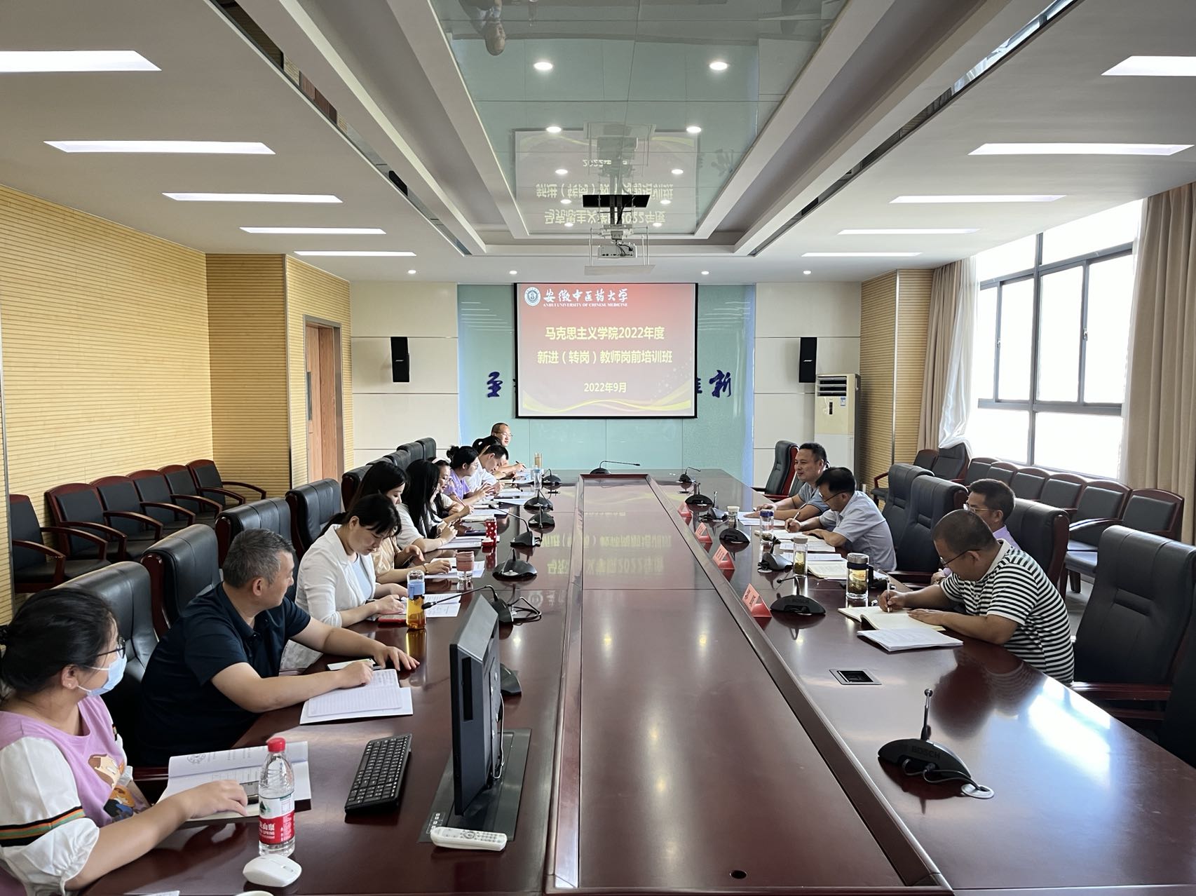 9月7日下午,为进一步提高新进(转岗)教师教学科研能力,帮助新进(转岗)教师尽快胜任思政课教师的岗位要求,马克思主义学院举办新进(转岗)教师专题培训班。人事处负责人,学院党总支书记黄学武、院长董玉节出席,学院14位新进(转岗)教师参加培训班。