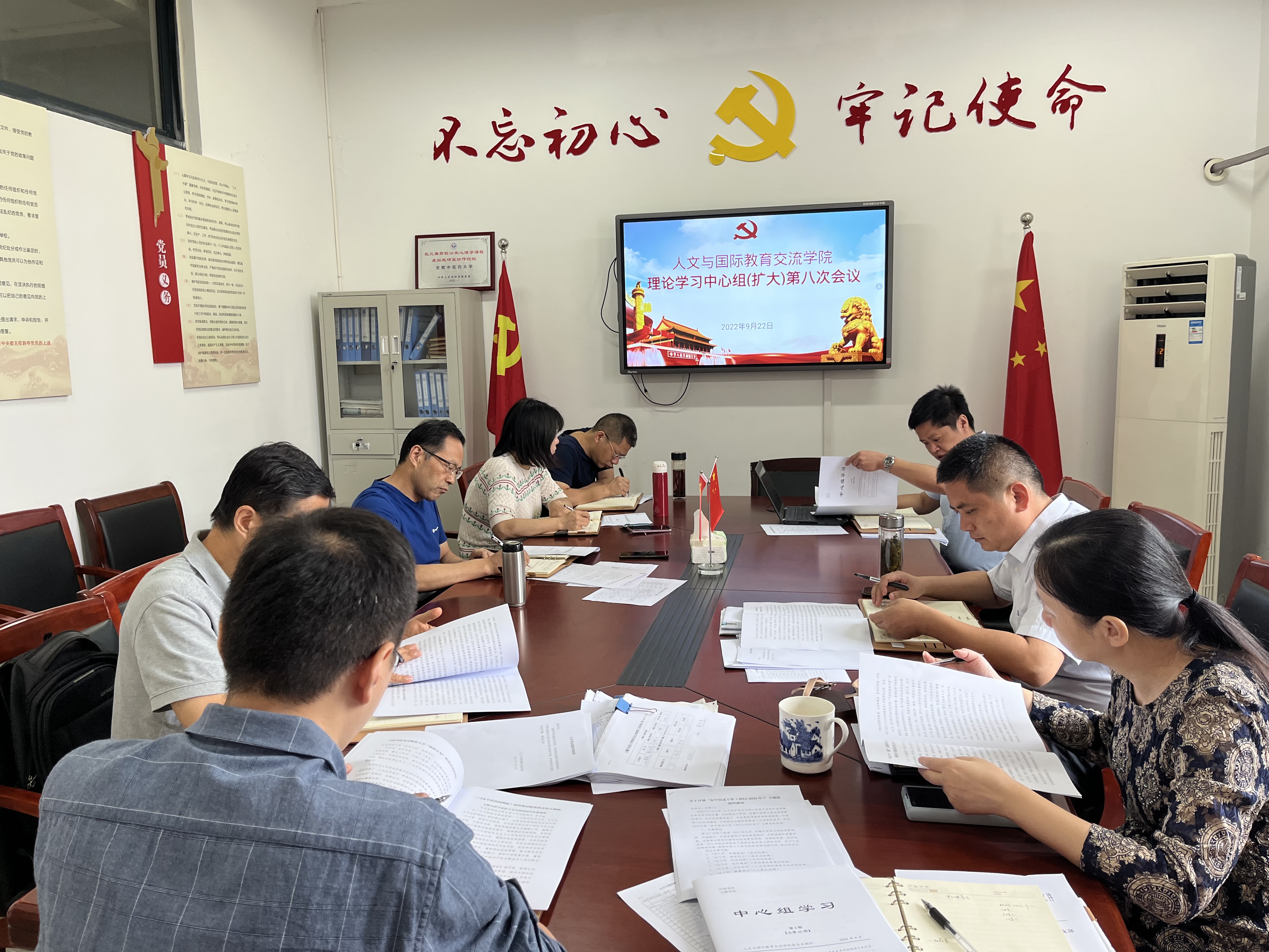 9月22日上午,人文与国际教育交流学院学院召开党总支中心组理论学习(扩大)会议,会议由院长周亚东主持,中心组全体成员、各党支部书记参会。