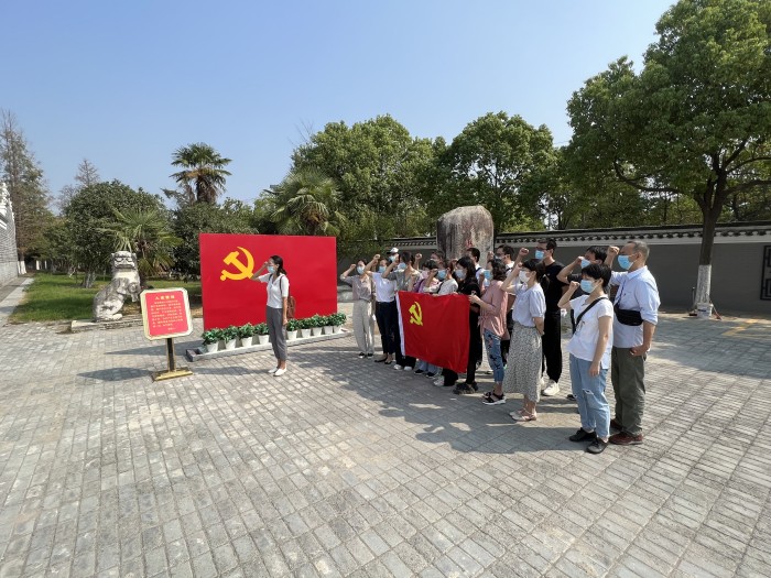 在渡江战役总前委旧址纪念馆广场,党员们重温了入党誓词,进一步增强党性观念,历史使命感和社会责任感。