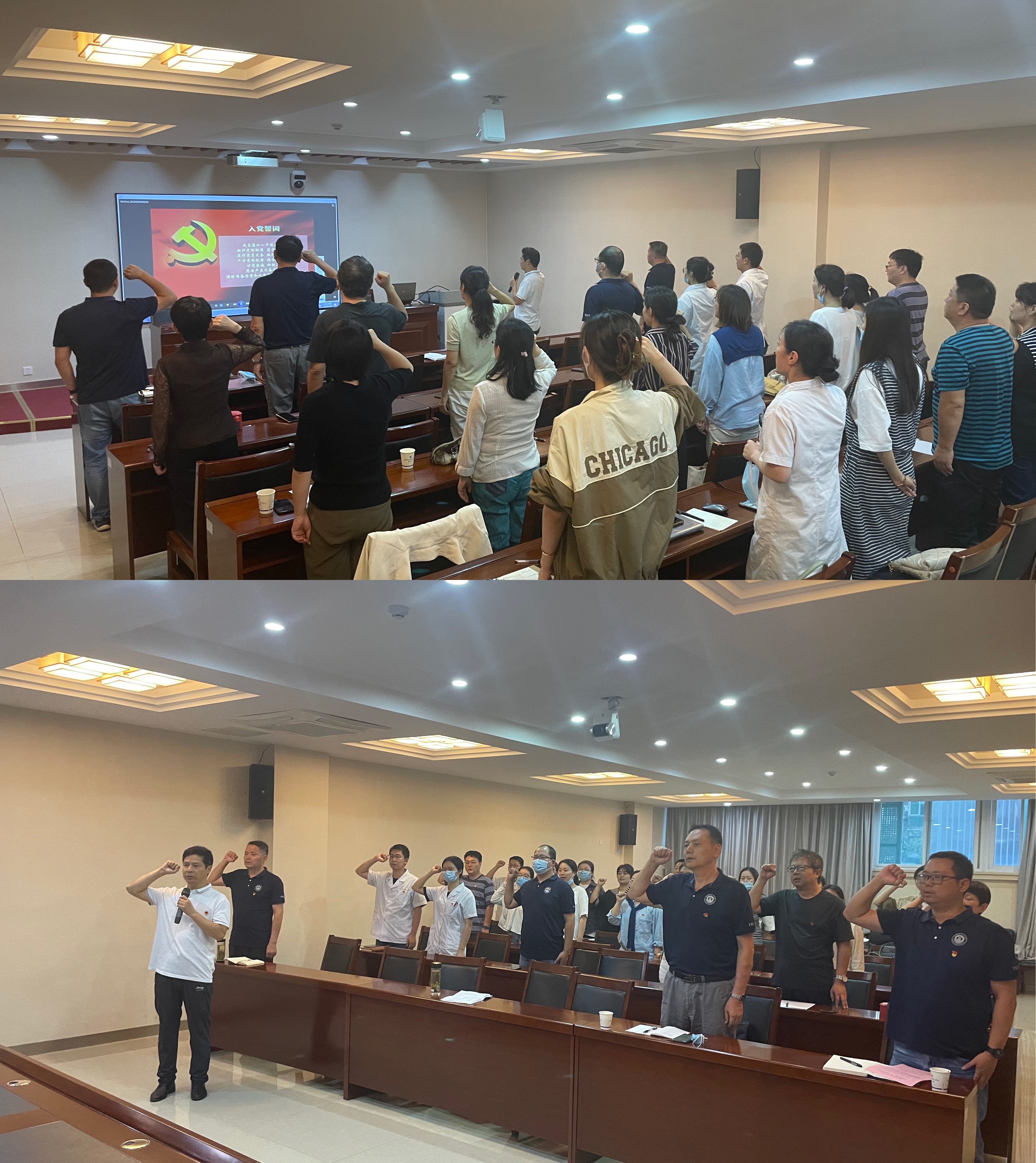 活动现场,在资产公司党总支书记、董事长张亚辉的带领下,党员们面对鲜红的党旗,重温曾经许下的庄严宣誓:“我志愿加入中国共产党……随时准备为党和人民牺牲一切,永不叛党。”当党员们举起右手、握紧拳头,面对党旗庄严宣誓、重温入党誓词的那一刻,八十个字的铮铮誓言,历经岁月的磨洗,愈加清晰,初心使命历久弥坚。