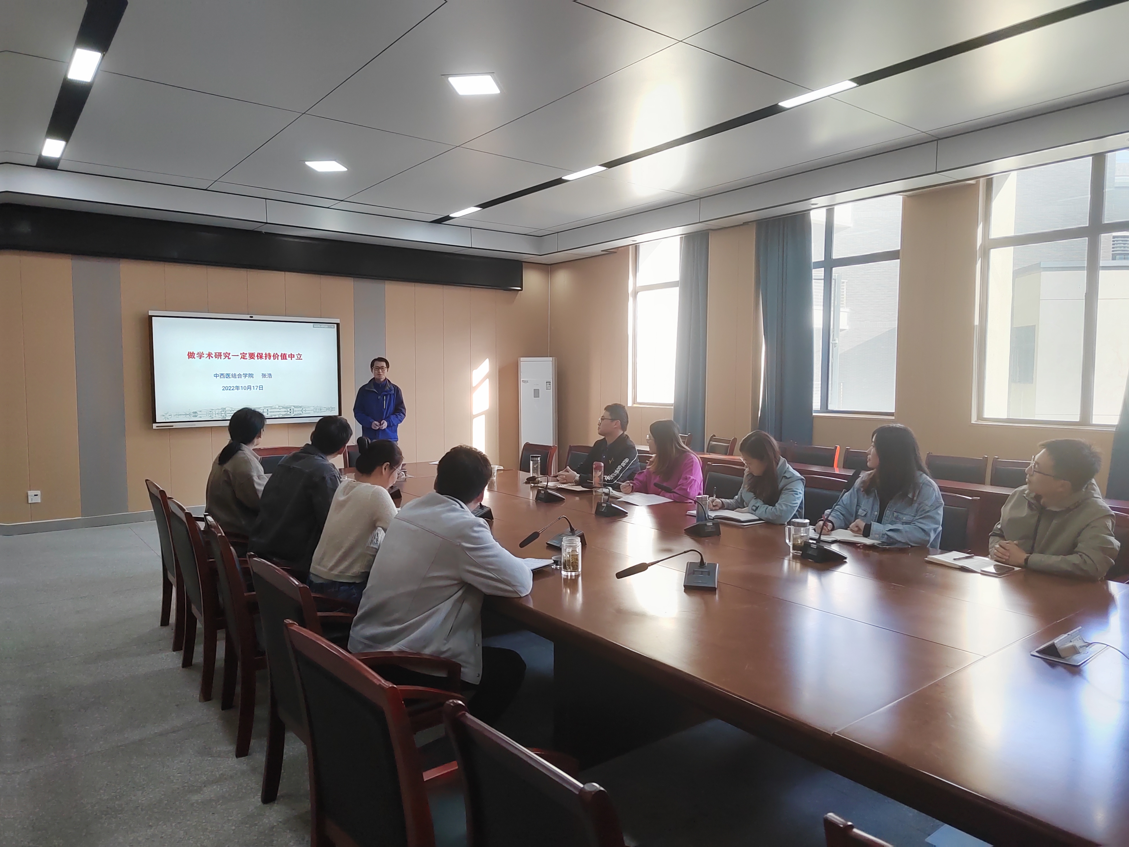 为了进一步增强思想政治教育工作实效,提升辅导员科研能力,10月17日下午,中西医结合学院在B8楼216会议室举行辅导员科研交流会,学校“映山红”优秀辅导员工作室主持人、学院党务办公室主任张浩进行现场汇报交流,学院全体专兼职辅导员老师参加。