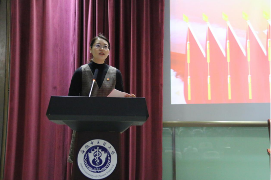 叶兰兰代表校团委宣读学校批复函并讲话。叶兰兰对医药经济管理学院第三次学生代表大会的召开表示热烈祝贺,向出席会议的各位代表致以亲切的问候。她肯定了医药经济管理学院分团委和学生会近年来工作取得的成绩,同时提出了几点期望:一是希望广大青年学生坚定理想信念,感党恩、听党话、跟党走,以青春之我创建青春之安中;二是希望广大青年学生践行知行合一,勤学习、受教育、长才干;三是强化责任担当,勇创新、担使命、作贡献,在我校“振兴中医药 创建‘双一流’”的进程中创造辉煌业绩。