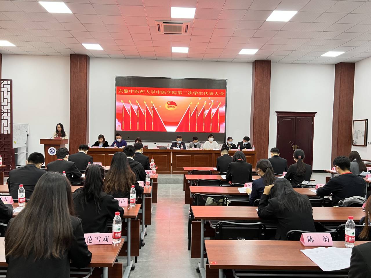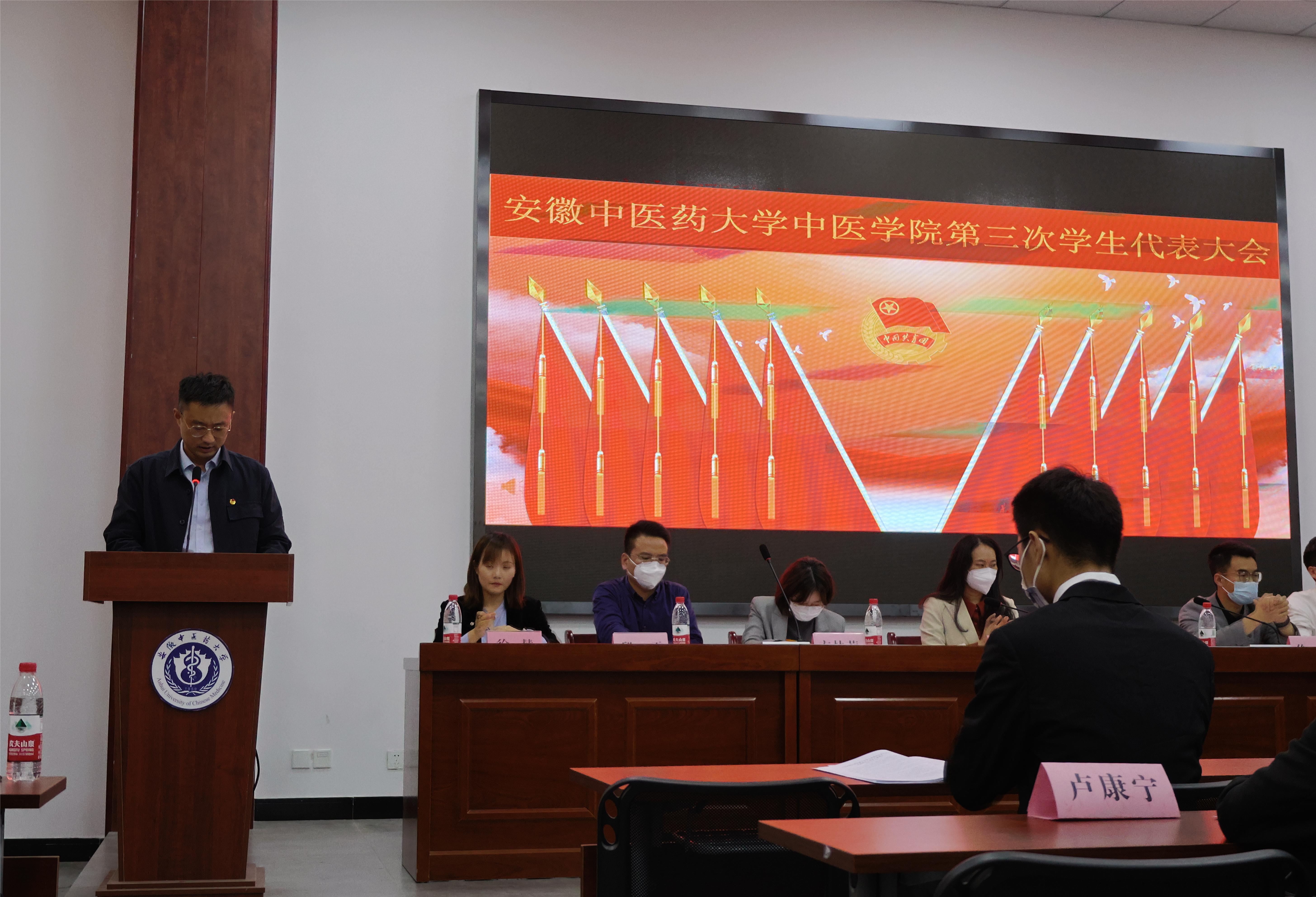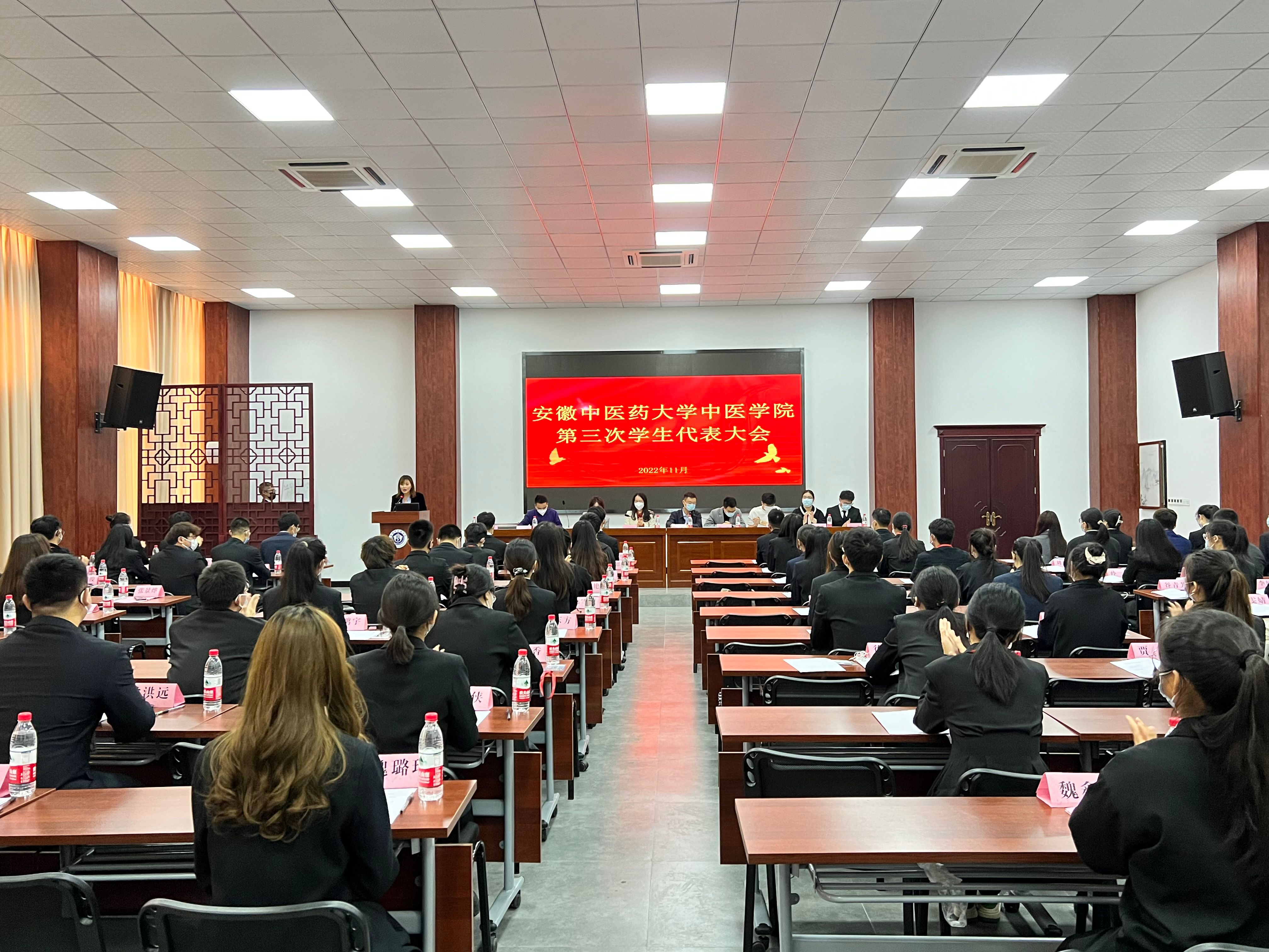 11月10日下午,中医学院在宅仁堂召开安徽中医药大学中医学院第三次学生代表大会,安徽中医药大学校团委副书记彭程,中医学院党委副书记宋婷婷,中医学院辅导员徐亚、方林莉、段雷、高明以及82名学生代表参加大会,会议由中医学院分团委书记徐慧主持。