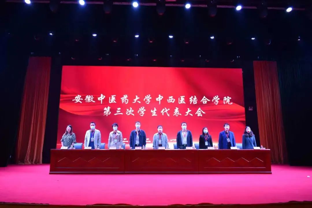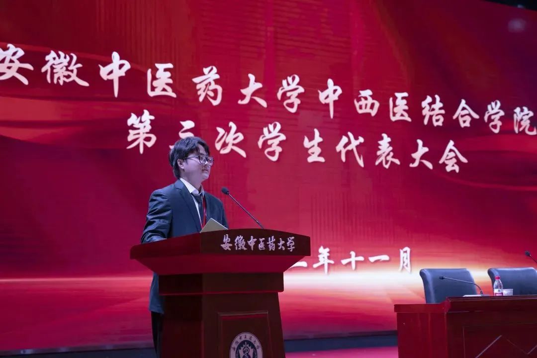 砥砺前行传薪火,锐意进取绘新篇。11月9日,安徽中医药大学中西医结合学院第三次学生代表大会在少荃湖校区大学生青年活动中心隆重召开。校团委副书记彭程、学院党委书记尹必武、院长蔡标、院党委副书记顾义俊、副院长江爱娟、副院长王靓,学院党委委员王龙海出席本次会议,学院各办公室负责人以及兄弟学院学生会主席和111名学代表参加了本次会议。会议由分团委书记黄顺主持。