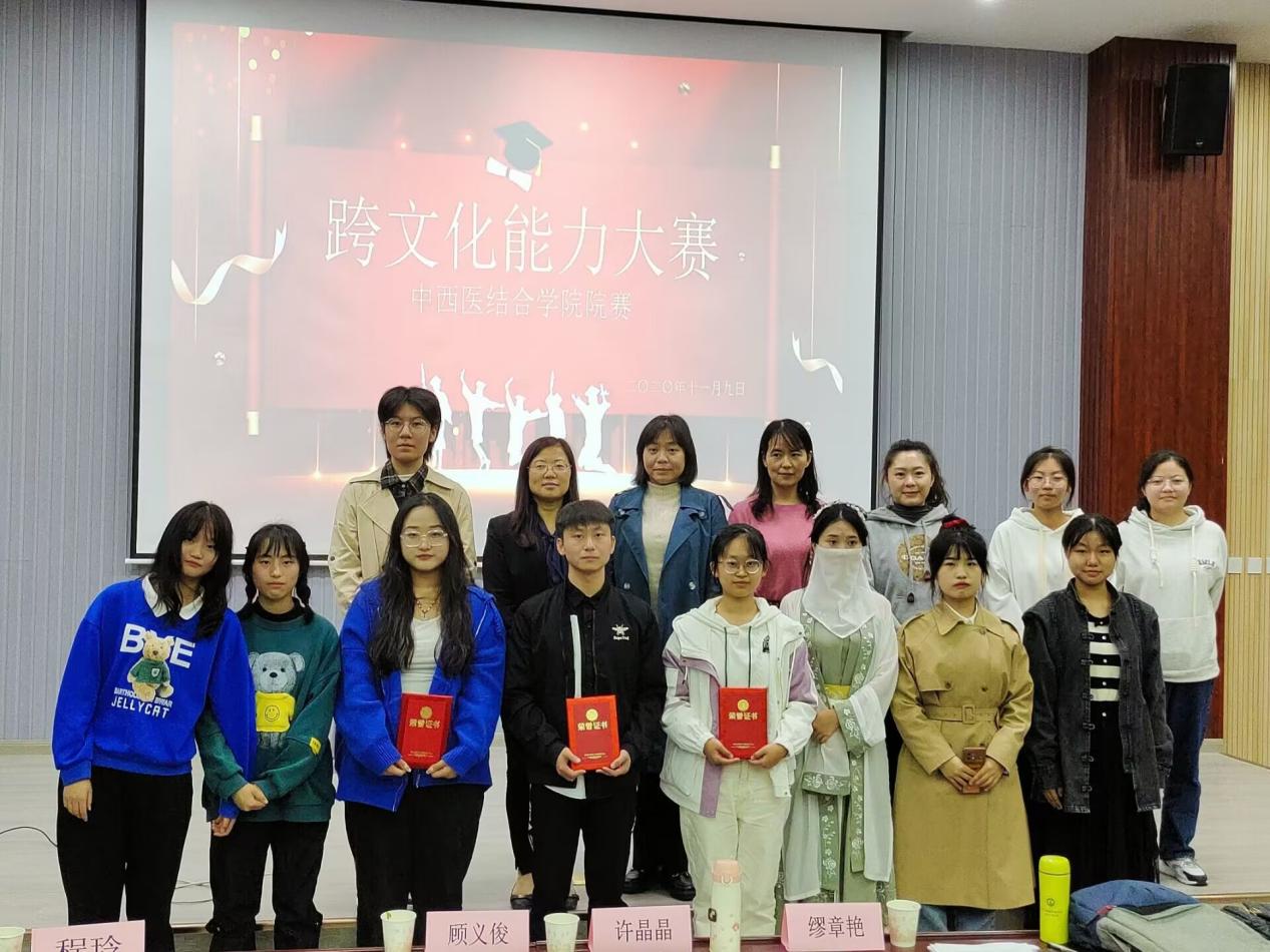 为提高学生跨文化意识和交际能力,培养具有国际视野、能“讲好中国故事,传播好中国声音”的高素质国际化人才,2022年11月9日18:00,在中西医结合学院楼254学术报告厅举行了跨文化能力大赛中西医结合学院院赛,学院党委副书记顾义俊、人文与国际教育交流学院程玲老师、许晶晶老师、缪章艳老师以及学生评委应邀共同担任评委。
