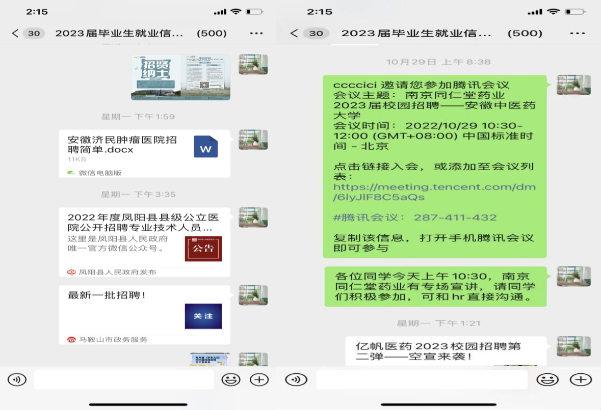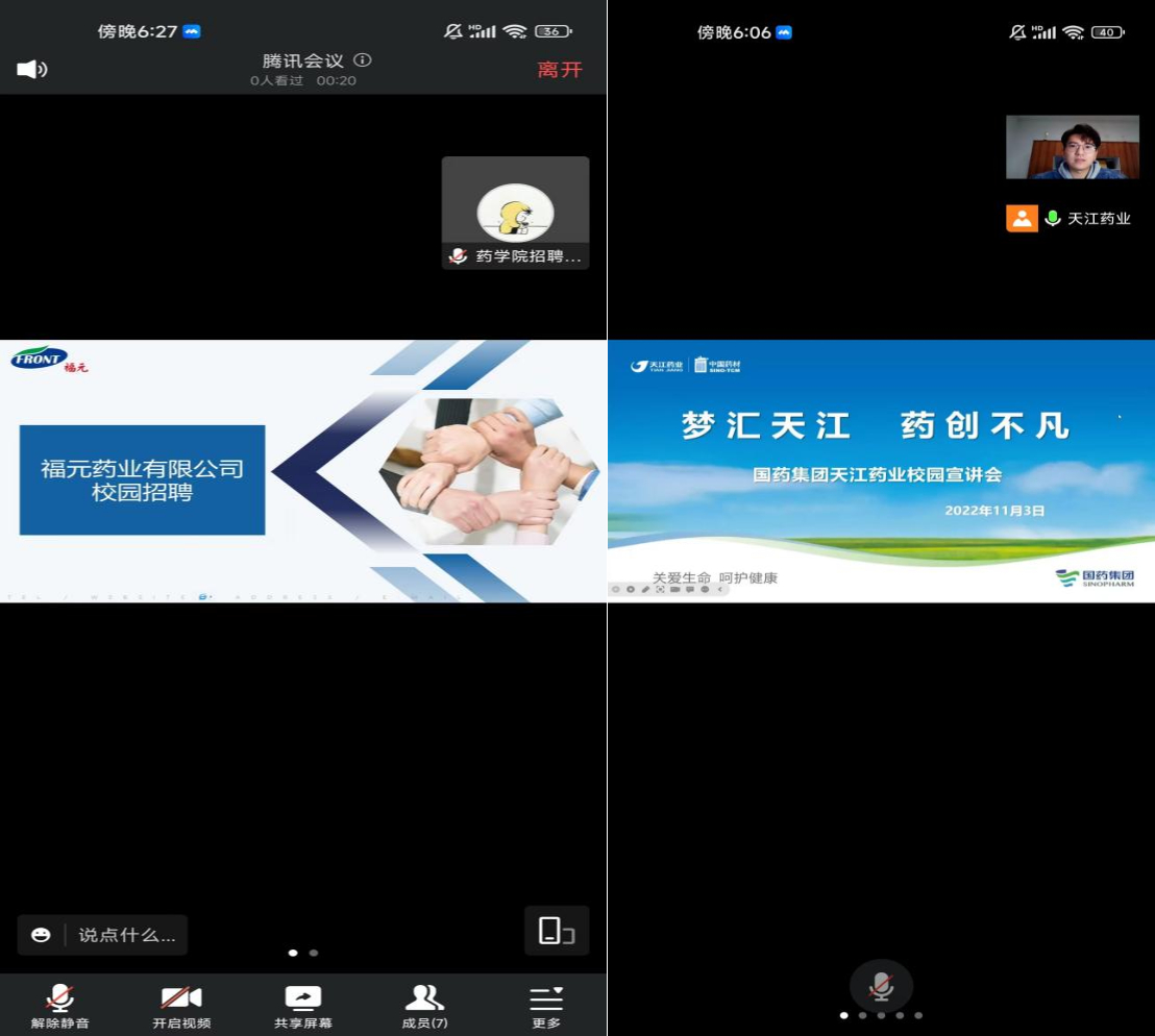 拓宽渠道,实现网络化求职应聘。药学院通过微信群和腾讯会议推送招聘信息,举办线上招聘会,为毕业生充分就业、满意就业搭建平台。有效地将线下招聘转换为线上互动信息化招聘模式,提高了就业招聘工作效率,为毕业生精准推送就业岗位。