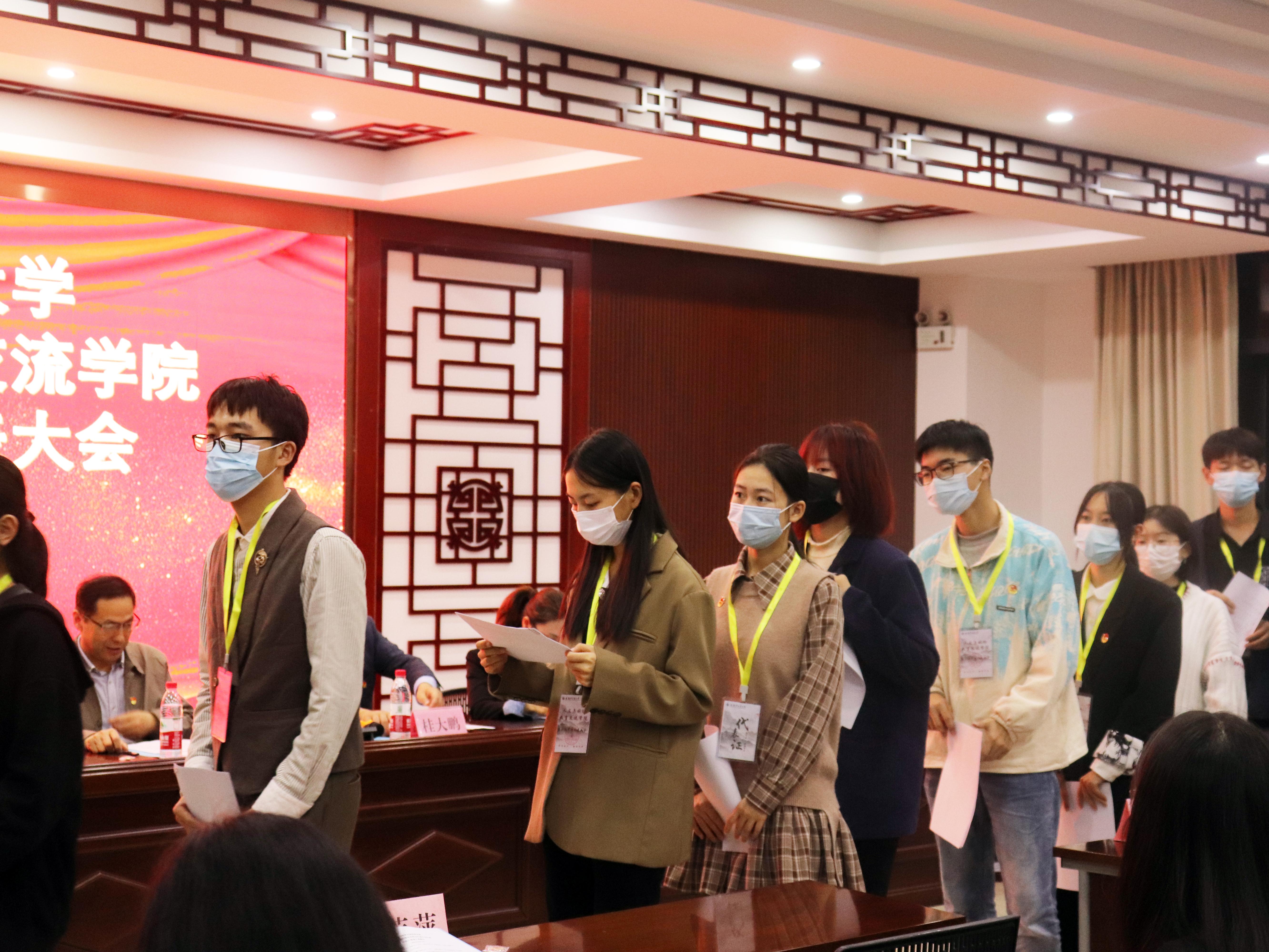 大会听取并审议通过了学院学生会委员会工作报告,选举产生了水鑫等7名同学为学院第三届学生会委员会委员,水鑫、王姚琦、胡苗苗3名同学为学院第三届学生会委员会主席团成员,王姚琦等7名同学为学校第四次学代会代表。(王满/文图 周亚东/审核)