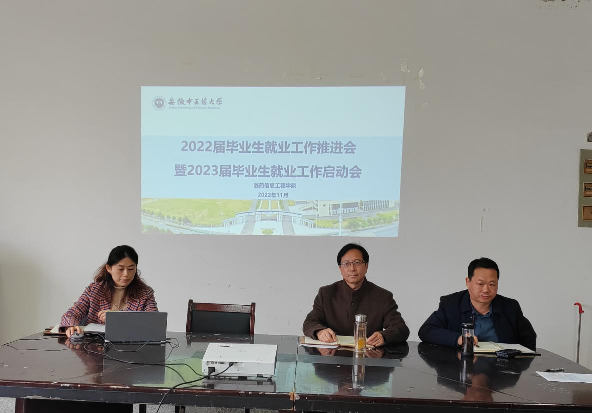 11月16日,医药信息工程学院召开2022届毕业生就业工作推进会暨2023届毕业生就业工作启动会,学院党政领导和全体教职工参加会议,会议由学院党委书记吴成海主持。