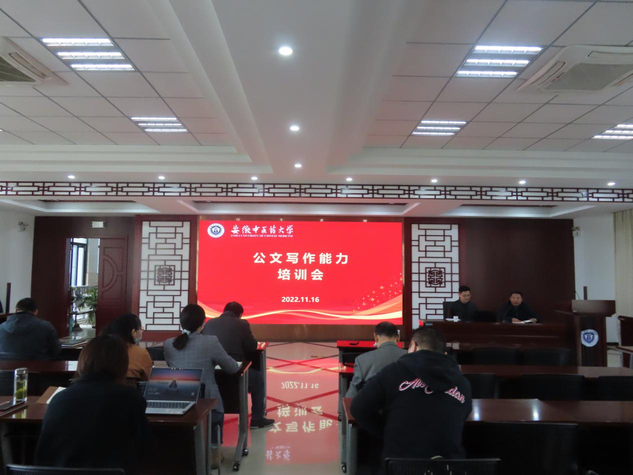为切实提升教职工公文写作技能和规范化水平,药学院于11月16日在沁馨堂会议室组织开展公文写作专题培训。本次培训邀请学校办公室文秘科科长杨浩主讲,药学院党委书记胡卿主持。全体办公室队伍及各系(中心)涉及公文写作的人员参加了此次培训。