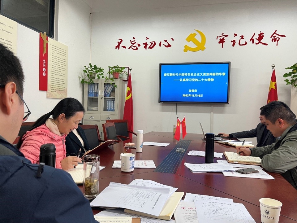 副院长张筱荣以“谱写新时代中国特色社会主义更加绚丽的华章——认真学习党的二十大精神”为题,为中心组成员作专题报告。张筱荣从深刻认识党的二十大召开的重大意义、加深理解党的二十大主题、认真学习党的二十大报告的主要内容及奋力谱写中国特色社会主义更加绚丽的华章四部分内容,以深入浅出的语言表达和类比方式,详细讲解了二十大报告中的关键点,对全院学习贯彻党的二十大精神进行再动员,将学习贯彻不断引向深入。