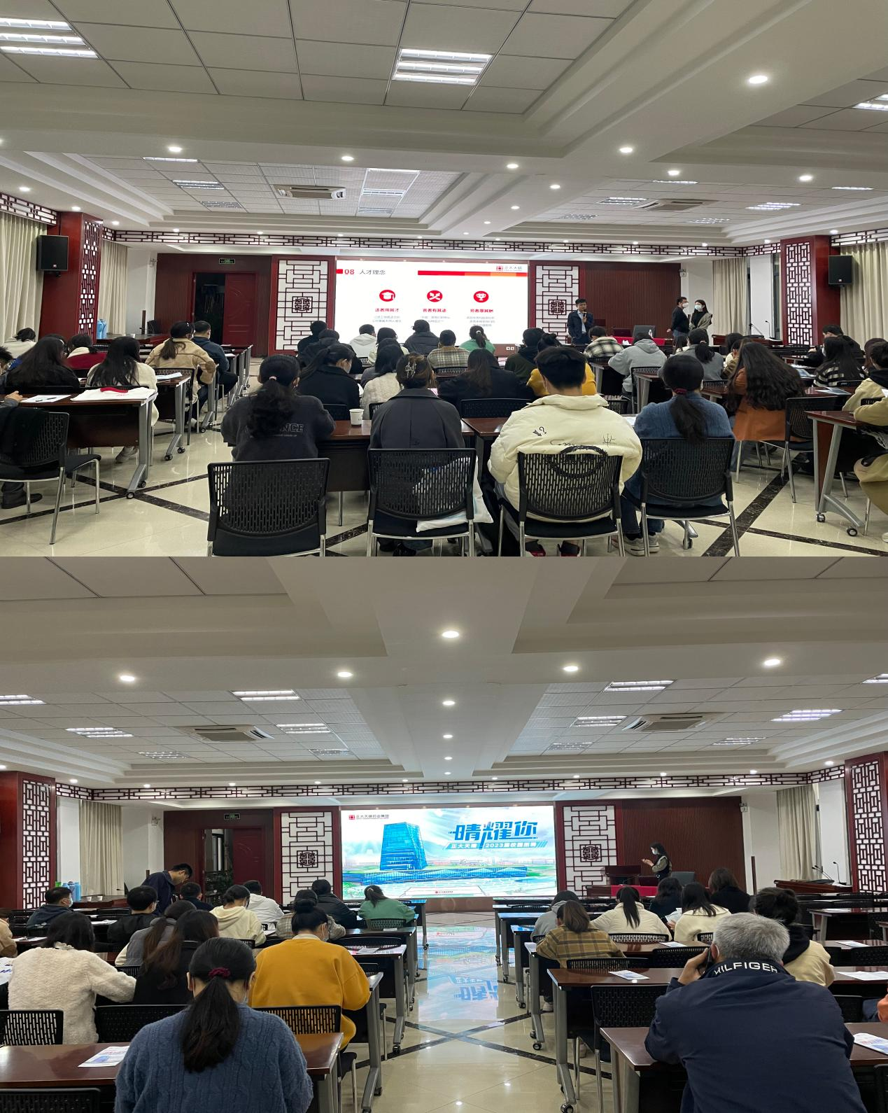 宣讲会上,企业方详细介绍了企业文化、招聘岗位、薪酬待遇,行业发展前景及公司情况,就同学们关心的入职后培训、发展及待遇等问题做出了解答。校友代表也分享了自己的人生经历和工作感悟,使同学们受益匪浅。本次系列宣讲会提供各类岗位200余个,50余名同学与企业达成初步就业意向。