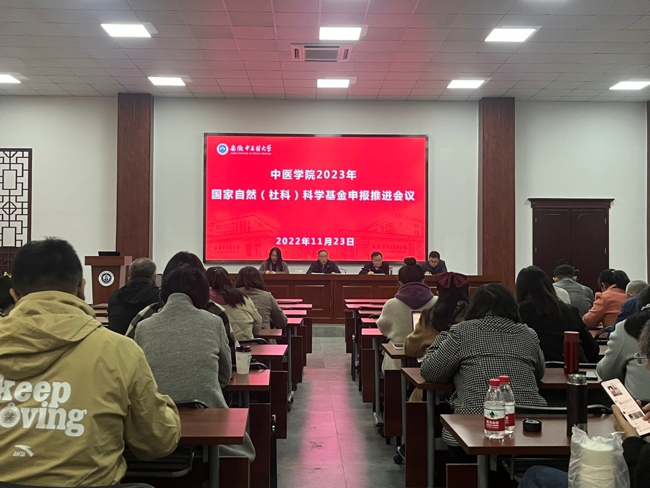 11月24日下午,中医学院召开2023年国家基金申报工作推进会,会议由学院党委书记杜明主持,院长方向明做工作部署,副书记、副院长及全体教师参加会议。