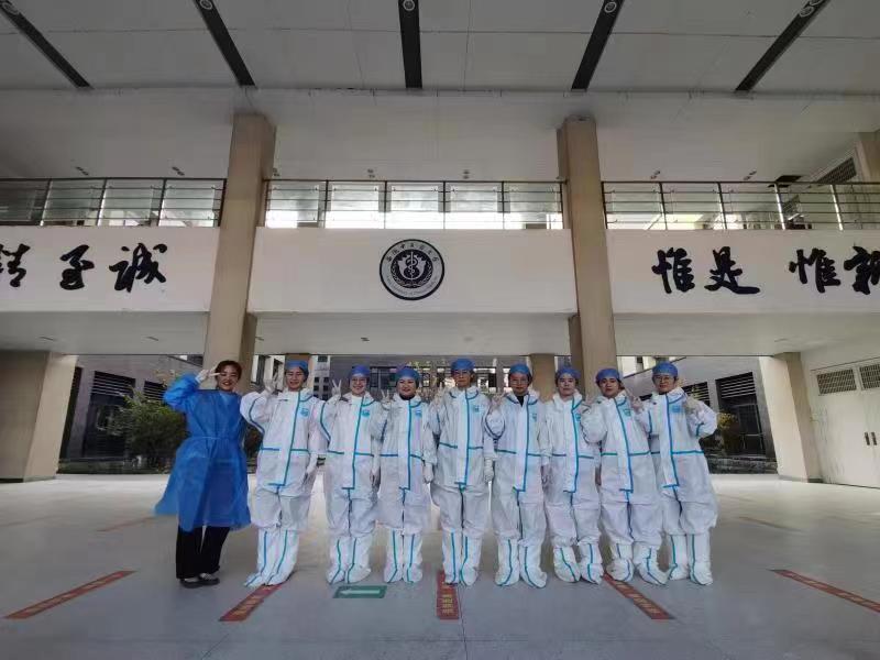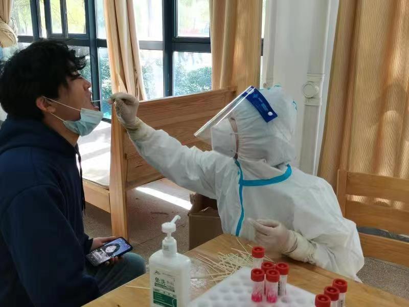 在“践行初心护理突击队”的微信群里,每半天都会通报一次核酸检测情况,小组与小组之间还PK起了核酸检测人次记录。从第一次的5439人次,到6892、6984、7528,越来越娴熟的工作组不断“刷新记录”。学生李超君表示,在学业和志愿工作的重压下,大家都能保持积极向上的正能量,很努力、很出色、很认真地对待每一次核酸检测,感觉我们都成了多边形战士。