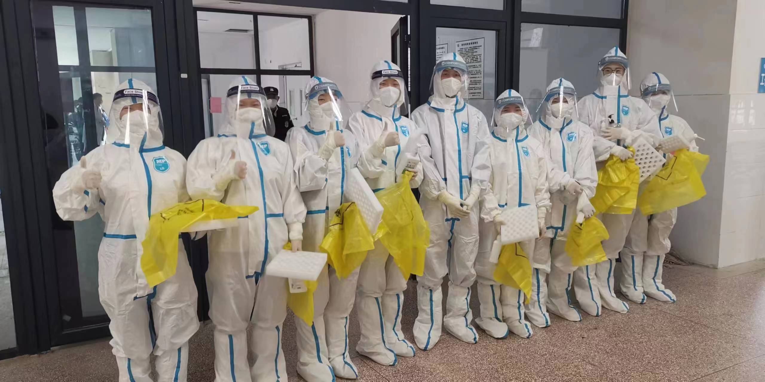 10月19日,突击队正式排班上岗。穿着密封的防护服,重复着手部消毒、拆开棉棒、采集咽拭子等动作,她们一坐就是半天甚至一天,常常累得腰酸胳膊疼。她们常说“没关系,明天就好了”。白天坚守核酸检测台,晚上线上线下结合学习专业知识,她们用实际行动践行了“有理想、敢担当、能吃苦,肯奋斗”的新时代好青年!