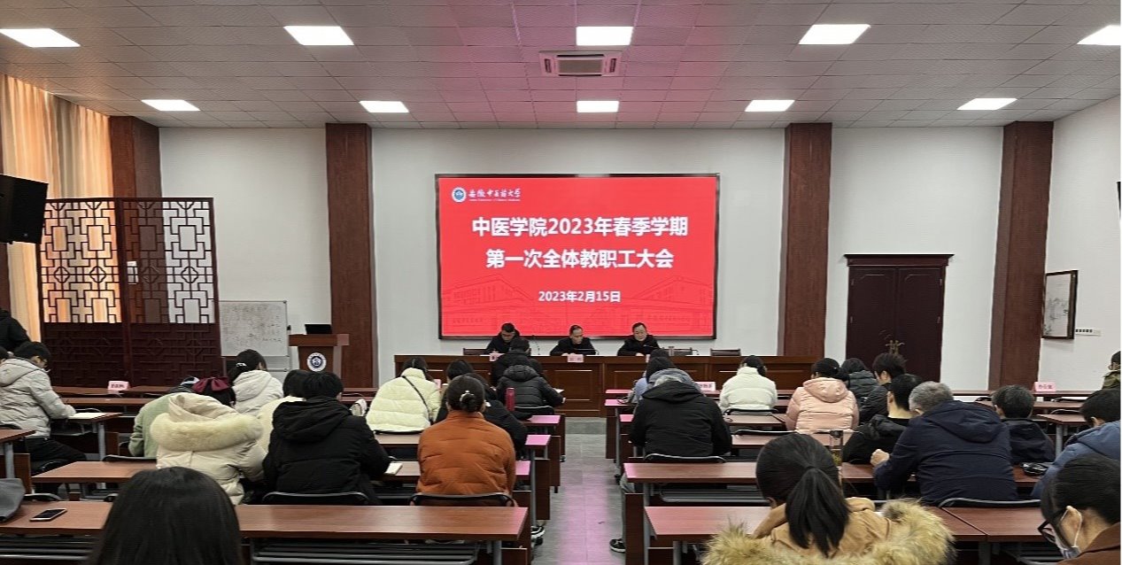 2月15日下午,中医学院组织召开2022-2023学年第二学期全体教职工会议,学院党政领导及全体教职工参加本次会议,会议由学院党委书记杜明主持。