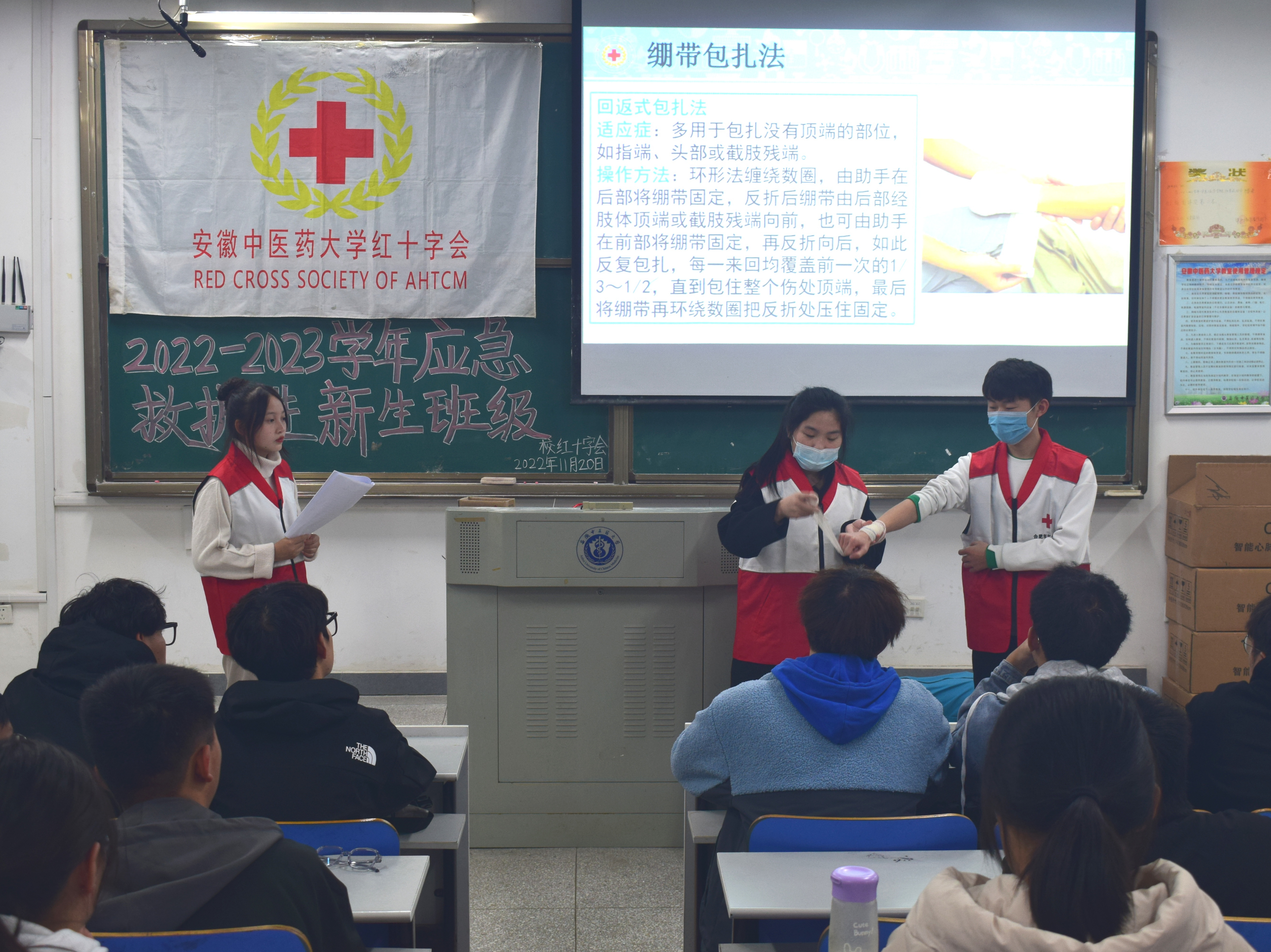 2022年,我校红十字会在安徽中医药大学党委领导、省市红十字会和校团委指导下,组织开展社区义诊、"救"在身边应急救护、“无偿献血”等30余项活动;疫情期间组织制作战疫香囊、担任核酸检测志愿者、开展校园暖心义诊,累计志愿服务时长60410.8小时。获批全国红十字模范单位,“青青仓木,始于关爱”暑期爱心支教团队入选团中央"七彩假期"志愿服务示范队,“急救四进”项目获安徽省2022年度红十字志愿服务品牌立项,共获得中国红十字总会、团中央、团省委、省红十字会等授予的20余项省级以上荣誉奖项。相关先进事迹受到中国青年网、中国中医药报、中国红十字报、安徽新闻网省市级主流媒体的宣传报道40余次。