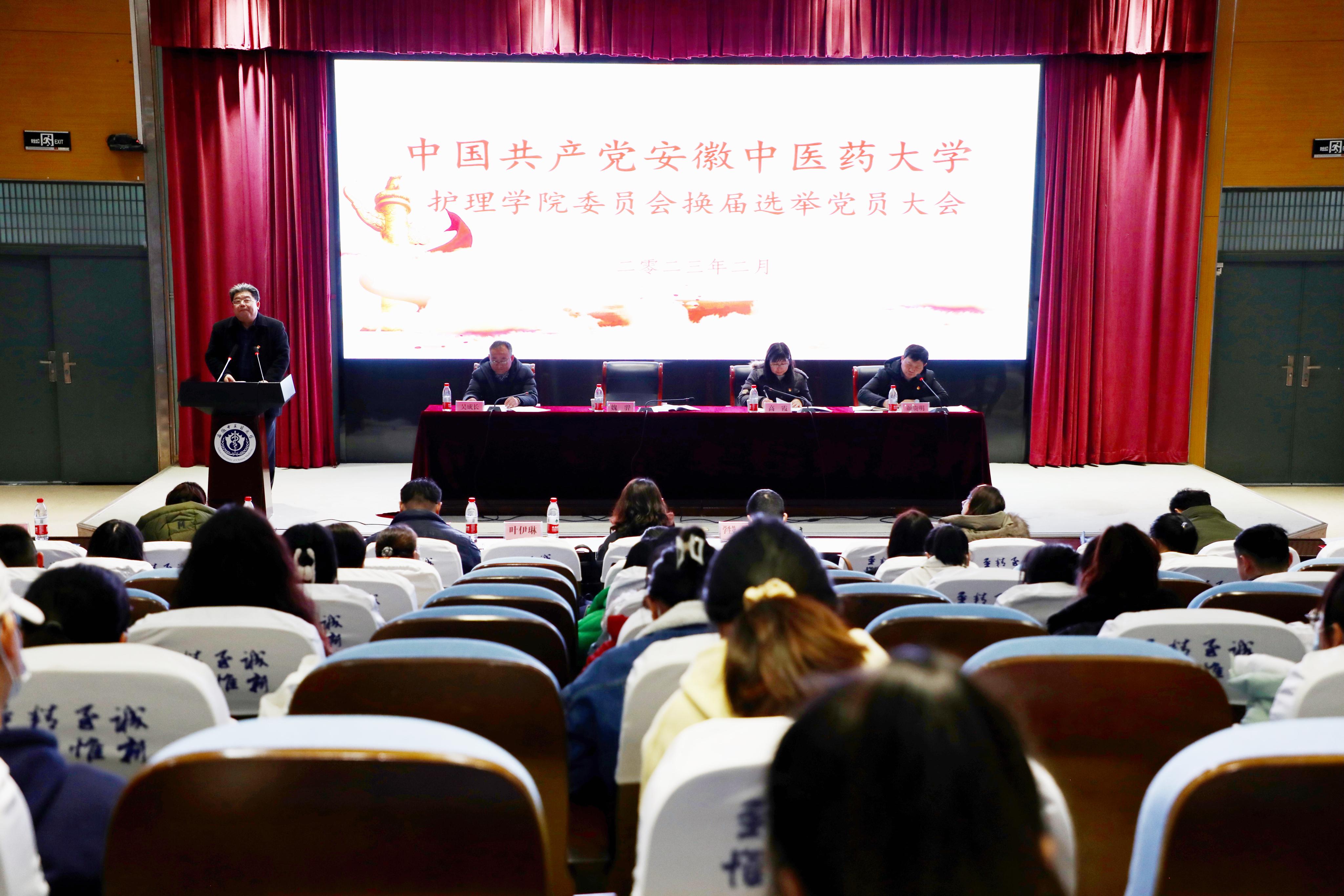 2月23日中午,中国共产党安徽中医药大学护理学院委员会换届选举党员大会在少荃湖校区公共教学楼A114报告厅顺利召开。学校党委常委、副校长魏骅同志,学校党委组织部副处级组织员高霞同志莅临大会,护理学院110名师生正式党员参会,会议由护理学院党委副书记、院长颜贵明主持。