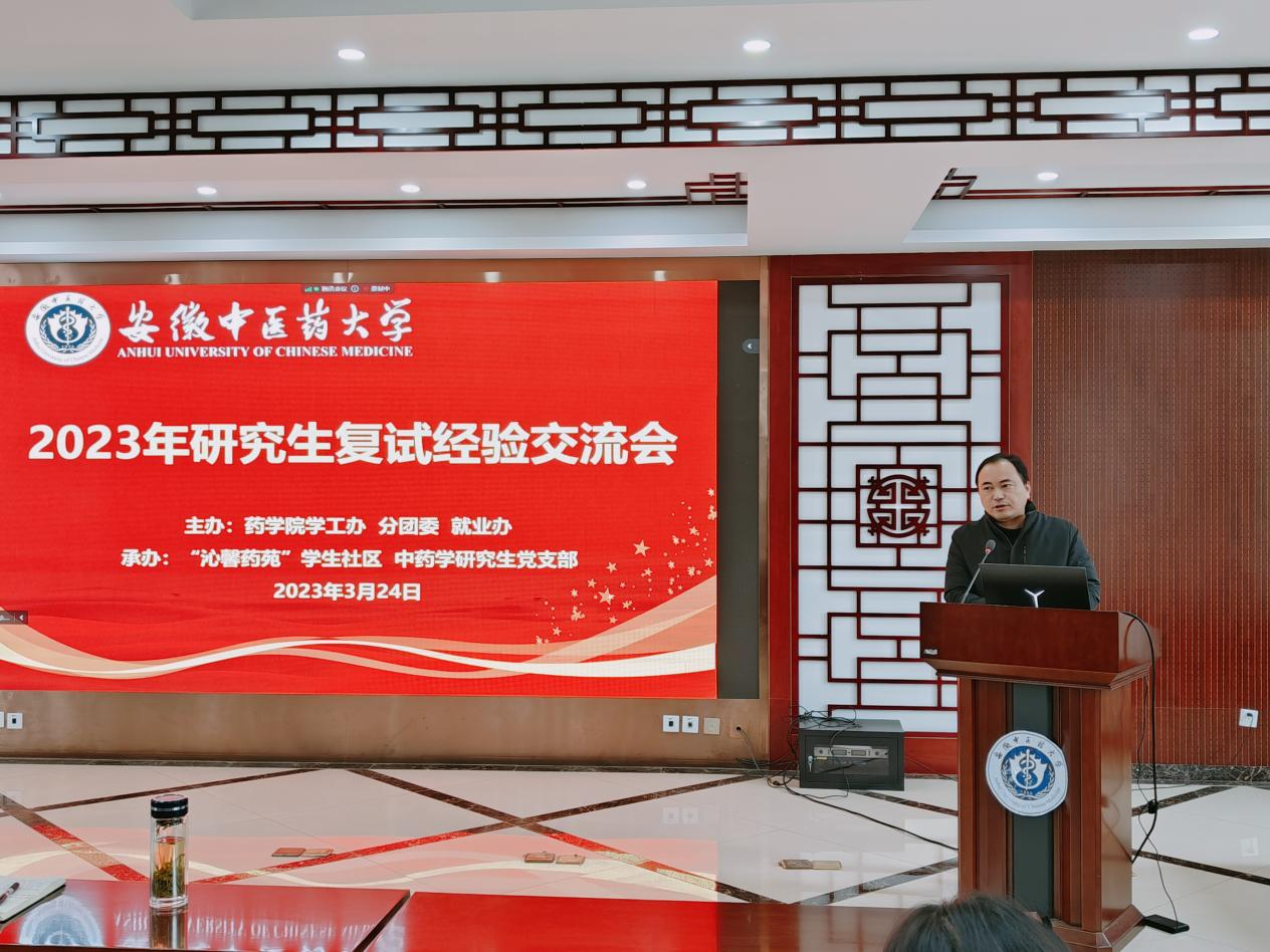 为扎实做好学院考研学子的精准指导和服务工作,进一步帮助学生了解考研复试内容,掌握复试技巧,增强自信心,3月24日,由药学院学工办、分团委、就业办主办,“沁馨药苑”学生社区、中药学研究生党支部承办的2023年研究生复试经验交流会在沁馨堂成功举办。