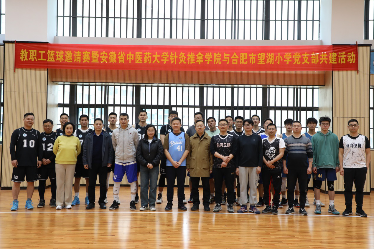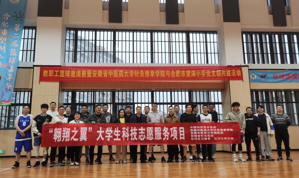 安徽中医药大学师生篮球队和望湖小学篮球队、包河区卫生健康委篮球队进行了篮球交流比赛。