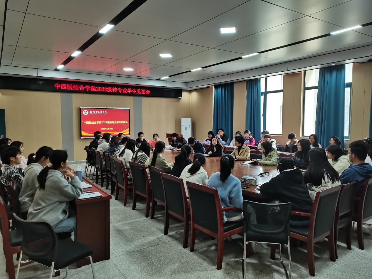 3月29日中午,中西医结合学院在学院216会议室召开了2022级转专业学生见面会,学院党委副书记顾义俊、副院长江爱娟、教学办、党务办、2022级辅导员老师以及46名转专业学生参加了会议。