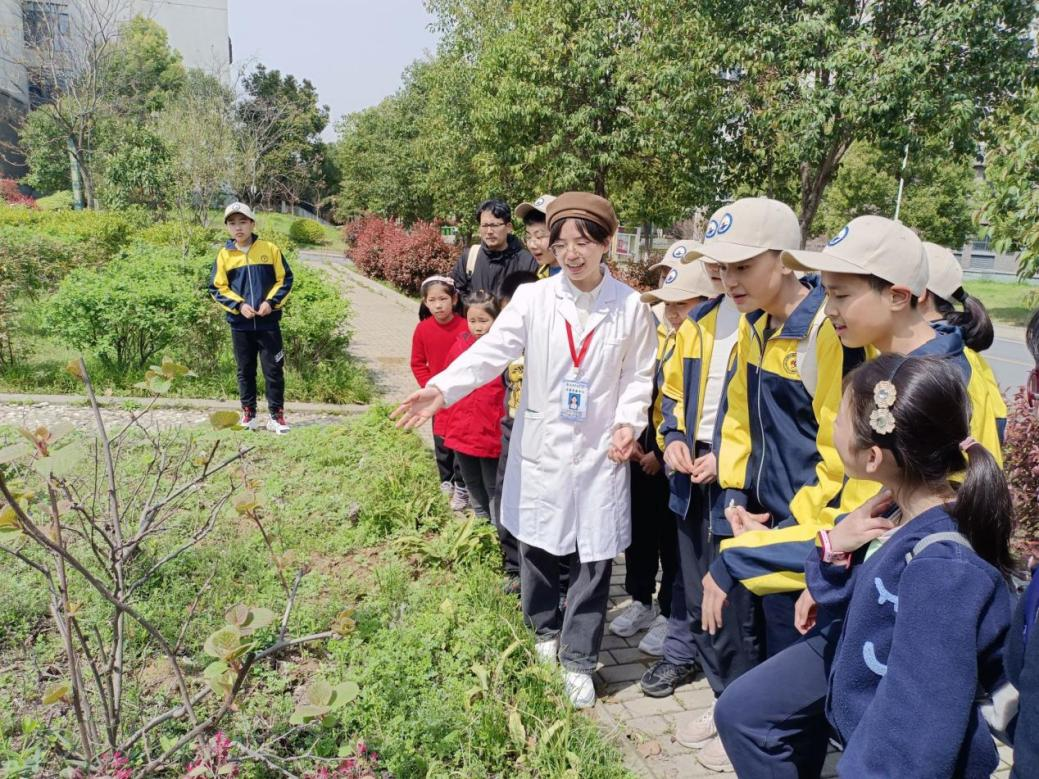 合肥市兴华苑小学(相山路校区)的同学们与志愿者一起亲手种植树苗,挥锹铲土、扶正树苗、填土压实、提水浇灌,通过现场观察讲解,认识身边的中药植物。