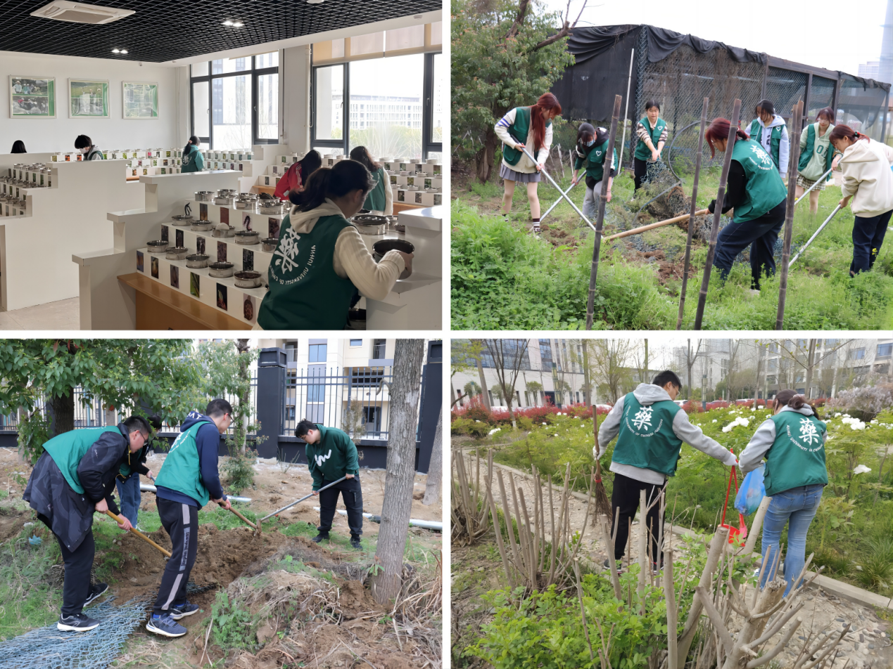 志愿者在药用植物园、中药材性状辨识馆等校园区域内认真细致地锄草、浇水和维护清理工作,将志愿服务与劳动教育相结合,为药材生长和学生学习提供了良好的环境,同时也增强了志愿者的动手实践能力和志愿服务意识。