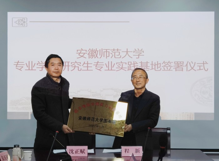 两校图书馆还签订了《专业学位研究生专业实践基地协议书》。我校图书馆成为安徽师范大学图书馆图书情报专硕实习实践基地,将增进双方在科学研究、人才培养、师资培训、学术交流等方面的合作。(周甜甜/文图 程新/审核)
