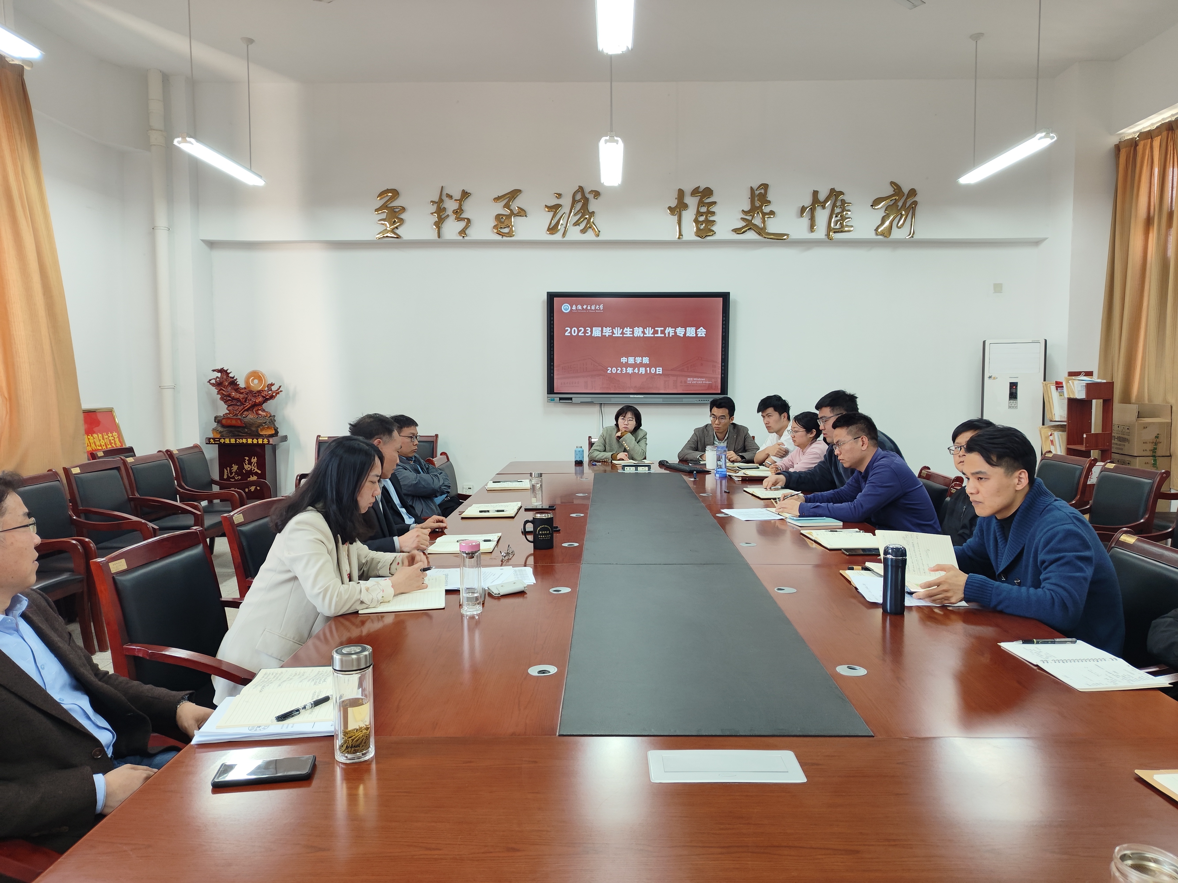 4月10日下午,中医学院召开2023届毕业生就业工作专题会议,学院全体党政领导、实习就业办公室负责人和毕业班辅导员参加会议,会议由学院党委书记杜明主持。