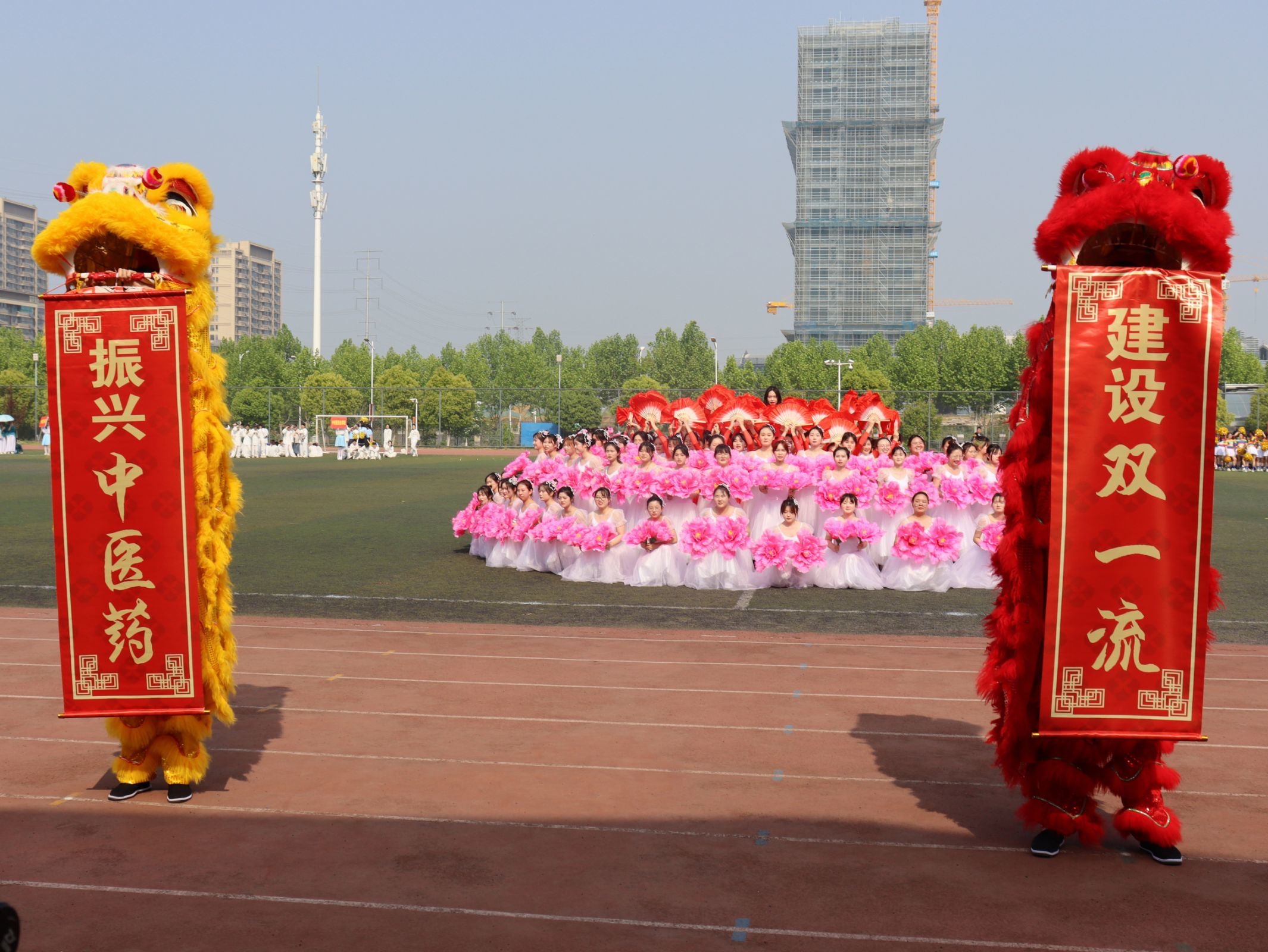 闭幕式上最令人期待的当属10支代表队团体操的同台竞技,在一个个精彩的表演过后,护理学院压轴登场。手持牡丹花身着白色长裙的姑娘们踏着轻盈的步伐迅速拉开队形,瞬间点燃全场的氛围。伴随着深情动听的《天耀中华》,护院团体操表演拉开帷幕,长裙舞者持红花红扇萦绕,轻歌曼舞,彰显着青春的魅力。随着音乐达到高潮,操场中间一抹红色映入眼帘,红衣飒飒鼓上起舞,一举一动都散发着属于少年的英气,吸引全场目光,瞬间掌声雷动。最后,舞龙舞狮闪亮登场,龙飞腾,狮翻跃,护院表演在“振兴中医药,建设‘双一流’”的口号中落下帷幕。护院团体操表演不仅通过选曲表达了对磨砺升华的中国精神的歌颂,也以扇子舞、舞龙舞狮等表演形式表达了浓烈的民族自豪感和自信心,传承了中华传统文化。