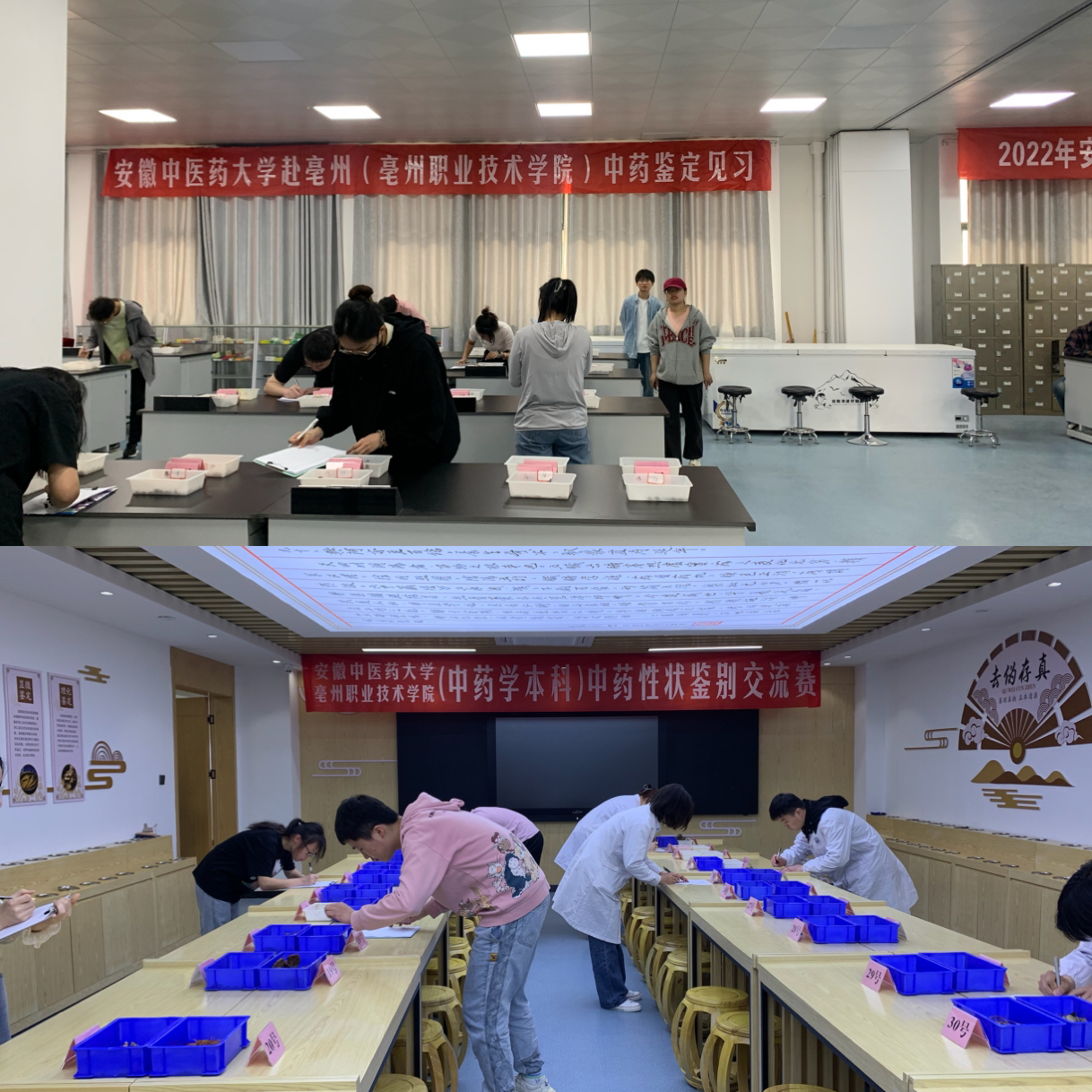学习期间,选拔代表参加了与亳州职业技术学院共同主办的中药性状鉴别交流比赛。参赛选手对随机抽取的40味中药,通过眼看形状、大小、色泽,手摸质地、断面,鼻闻其味辨识中药,进一步加强以赛促学、以赛促教的理念,也促进了两校间交流,互相学习、互相借鉴。