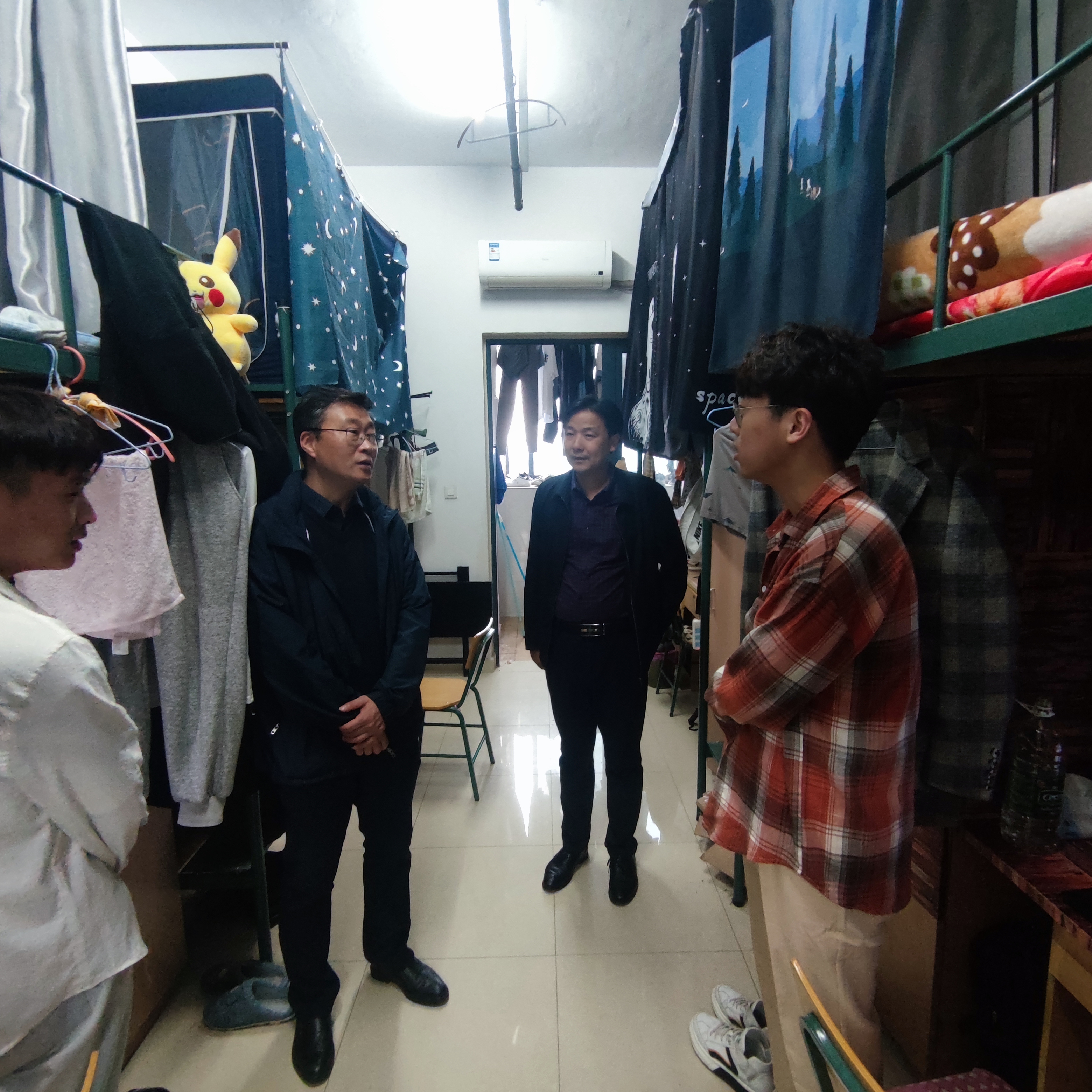 走访过程中,冯鑫与学生进行了亲切交谈,他询问了学生们“五一”假期的安排,叮嘱假期出行的学生要注意安全,特别是交通安全和防范网络电信诈骗,强调离校期间宿舍的水电安全;了解宿舍同学们的住宿情况,耐心听取同学们反馈的意见;鼓励高年级学生抓住实习机会,做好就业谋划和准备,不断提高自身素质,增强竞争优势。