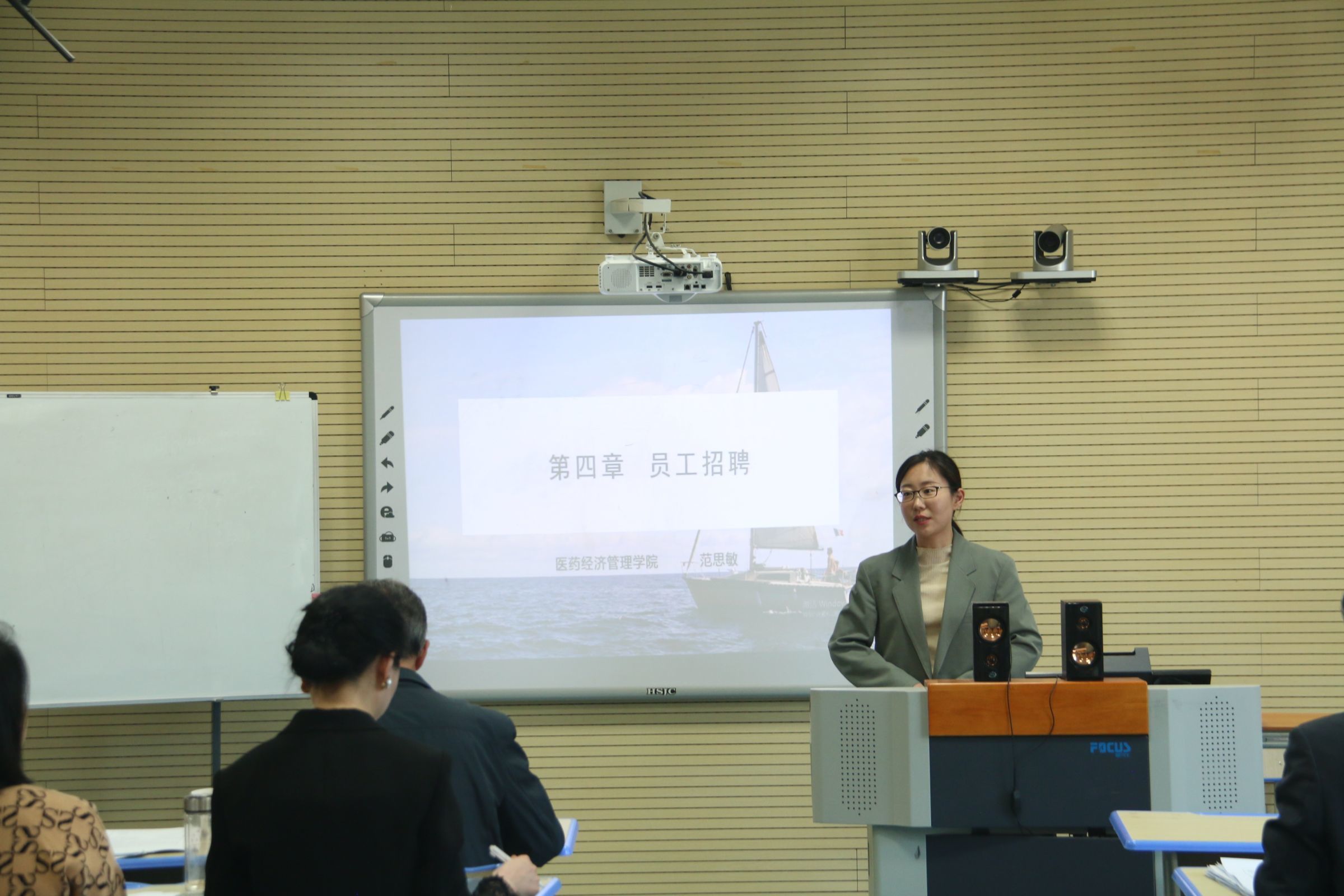 根据学校《关于举办安徽中医药大学第第21届青年教师教学基本功竞赛的通知》要求,医药经济管理学院1983年1月1日以后出生、副高级职称及以下青年教师共11人参加了本次预选赛。比赛分为现场教学和教学设计评审两个部分。11名教师根据抽签顺序依次进行10分钟的现场教学展示,同时评委对参赛教师提交的该教学单元的教学设计进行评分。