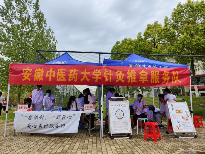 “一根银针 一颗匠心”爱心医疗服务团成立于2017年,在针灸推拿学院党委和团委的具体指导下,充分整合学院教师、附属医院中医师、临床专业本硕博学生志愿者资源,以社区、中小学、偏远乡村为阵地,充分发挥中医针灸、推拿、拔罐、药膳、健身气功养生等技能优势,为群众健康“把脉”,为邻里生活“添香”,为社区干部服务群众“提气”。截止目前,团队在团中央志愿汇APP注册志愿者2161人,志愿服务总时长87319.9小时,每年服务群众累计达2000人次,已涌现出姬宏杰、何静、常永龙、齐亚军等多名市级、省级、国家级青年志愿者优秀个人,受到《光明日报》《中国教育报》《中国中医药报》《安徽日报》《合肥新闻联播》《合肥日报》等国家级、省市级主流媒体报道。