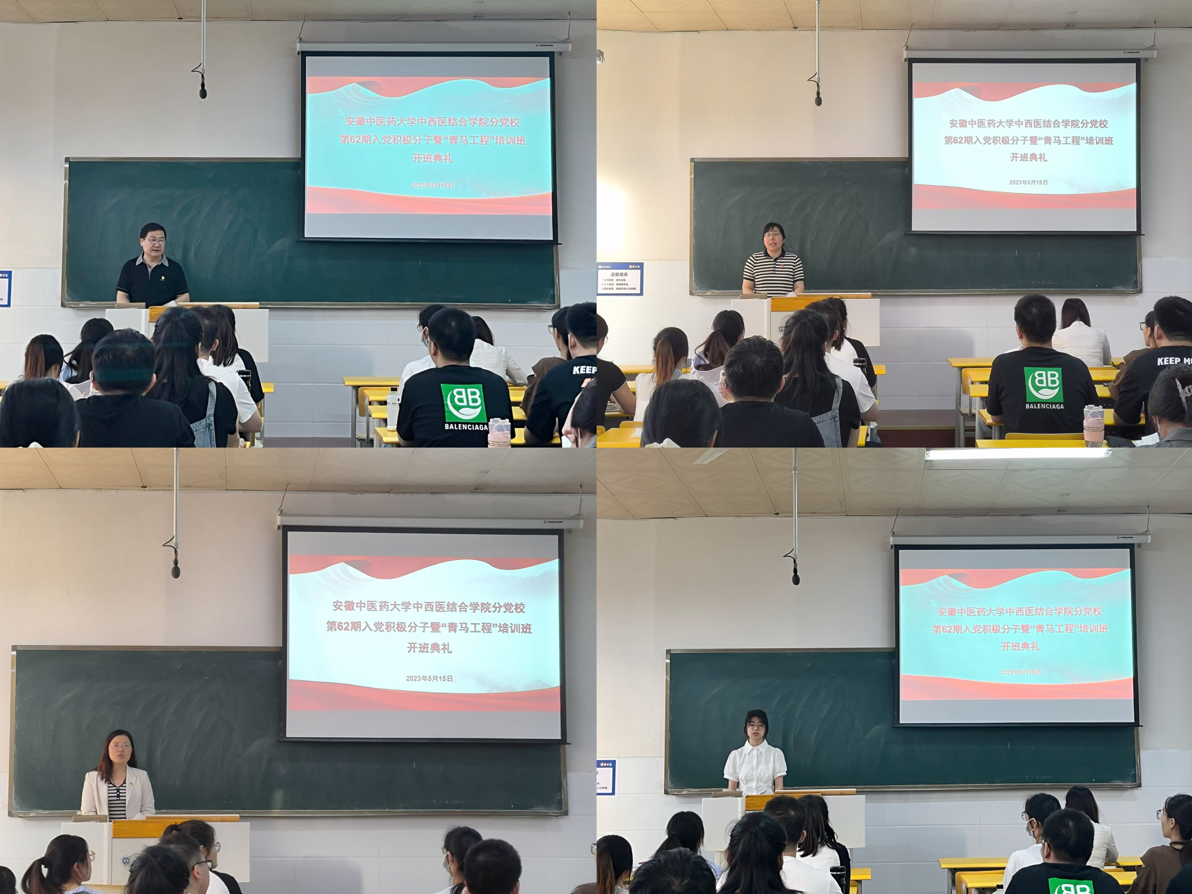 在学校深入开展学习贯彻习近平新时代中国特色社会主义思想主题教育之际,为切实提高入党积极分子的理论水平和思想政治觉悟,5月15日下午,中西医结合学院分党校第62期入党积极分子暨“青马工程”培训班开班典礼在史河路校区108教室顺利举行。学校党委组织部副处级组织员高霞、中西医结合学院党委书记尹必武、中西医结合学院党委副书记顾义俊、培训班班主任、学生辅导员及参训学员参加典礼,开班典礼由学院党委副书记顾义俊主持。
