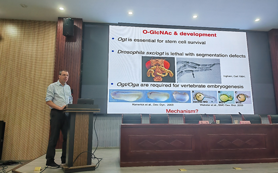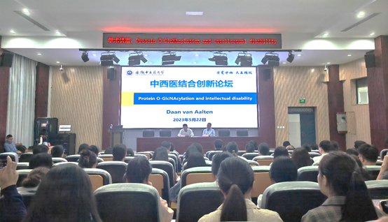 5月22日,英国爱丁堡皇家学会院士、丹麦奥胡斯大学Daan van Aalten教授,做客我校中西医结合创新论坛,开展了题为“Protein O-GlcNAcylation and intellectual disability”的学术讲座。会议由中西医结合学院院长蔡标主持,中西医结合学院全体教师及研究生代表,学校部分专家现场聆听讲座。
