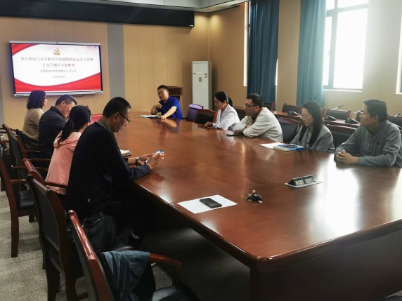 学院党委副书记顾义俊以《学习贯彻习近平新时代中国特色社会主义思想,构建三全育人体系》为题,到联系的教工第四党支部开展专题党课。学院党委委员、副院长江爱娟,以《学习贯彻习近平新时代中国特色社会主义思想,扎实做好本科教学审核评估工作》为题,到联系的教工第一党支部开展专题党课。学院党委委员、副院长王靓,以《学习贯彻习近平新时代中国特色社会主义思想,强化担当实干,推动学科发展》为题,到联系的教工第六党支部开展专题党课。