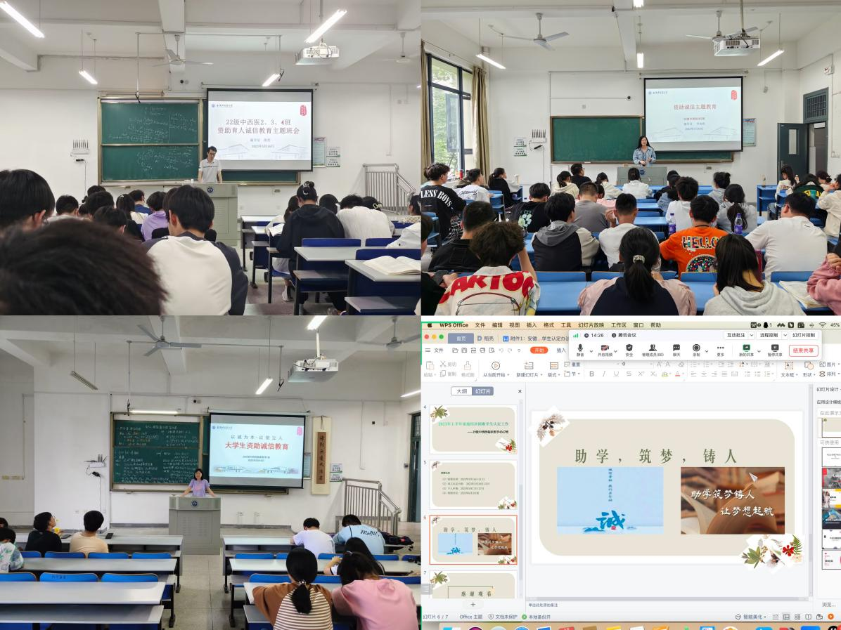 为进一步加强和改进大学生思想政治教育工作,进一步做好资助育人工作,深入贯彻有关学生诚信教育的工作要点,让每一位同学都成为诚信教育活动的受益者、诚信品德的践行者,做到诚信受助、诚信还贷,促进学生的成长成才,进一步推进学院良好院风学风的建设,中西医结合学院开展资助诚信教育主题活动。